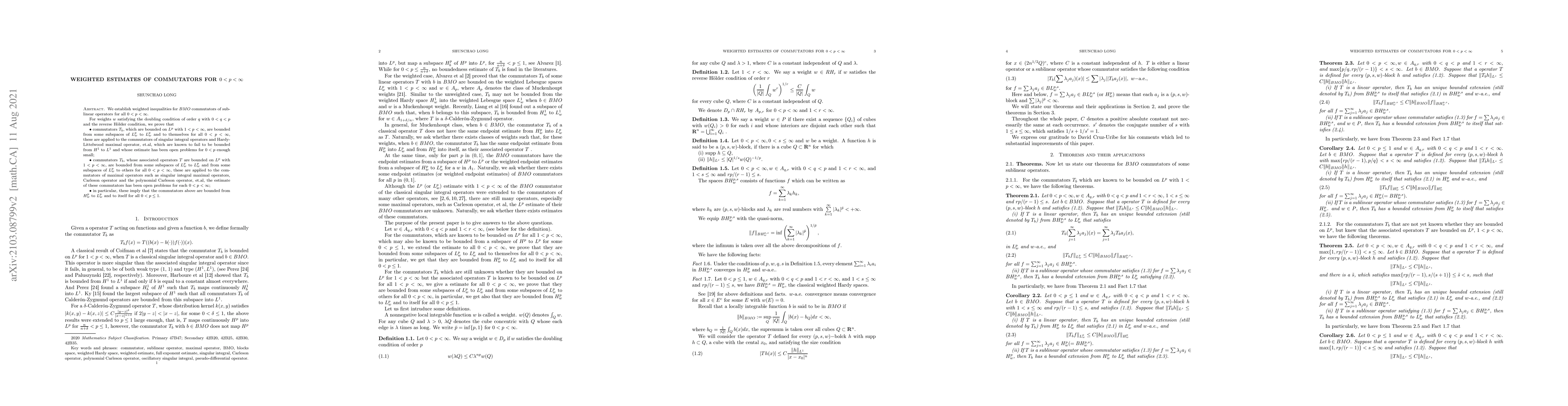 This paper establishes weighted inequalities for $BMO$ commutators of sublinear operators across all $0<p<\infty$. It proves that certain commutators, associated with singular integral and maximal operators, are bounded from specific weighted $L^p$ spaces to themselves, resolving longstanding open problems regarding their boundedness.