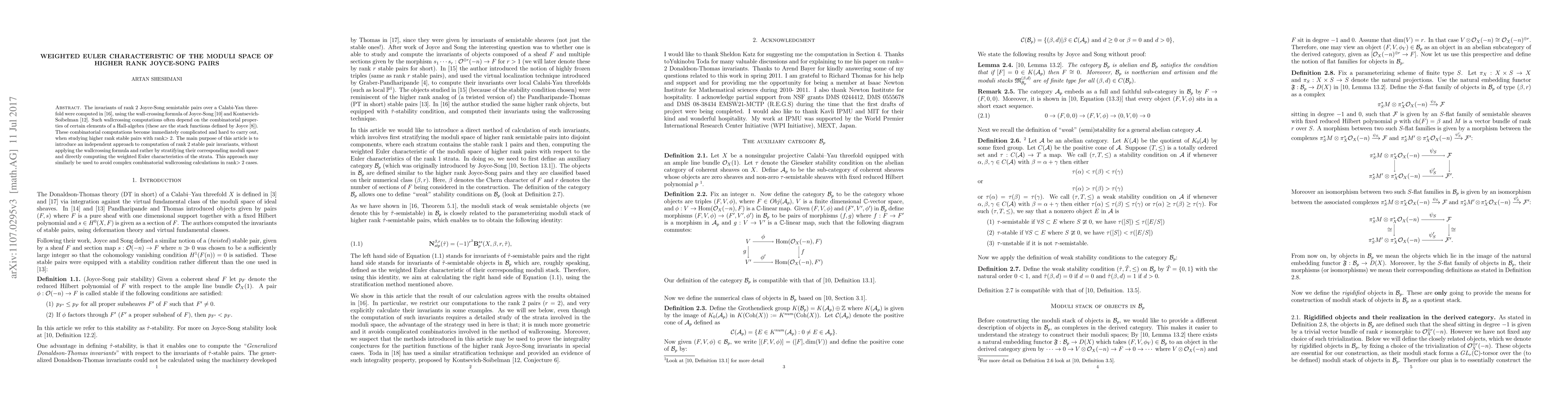 Researchers introduce an independent approach to computing invariants of rank 2 stable pairs without using wall-crossing formulas, instead focusing on the weighted Euler characteristic of their moduli space.