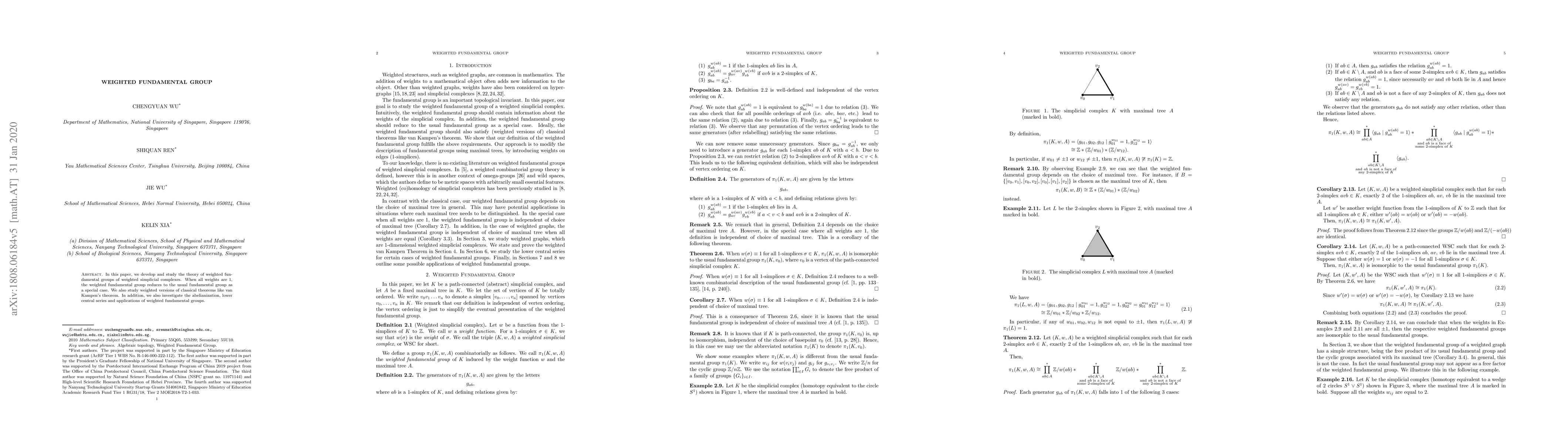 This paper introduces the concept of weighted fundamental groups for weighted simplicial complexes, reducing to the usual fundamental group when all weights are 1. It also explores weighted versions of van Kampen's theorem and investigates the abelianization, lower central series, and applications of these groups.