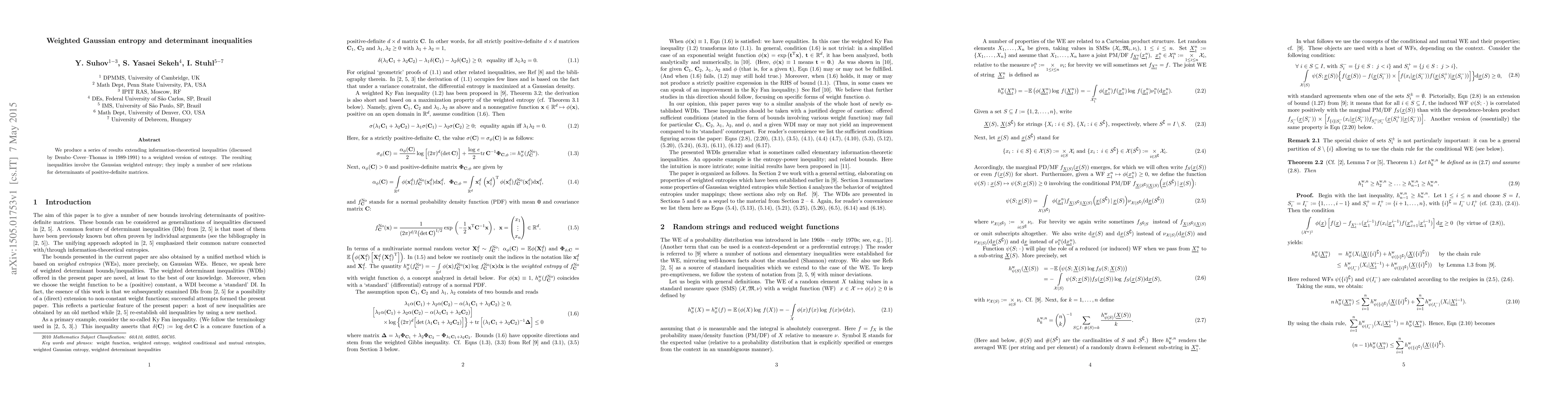 This paper extends classical information-theoretical inequalities to a weighted entropy framework, introducing Gaussian weighted entropy and deriving new determinant inequalities for positive-definite matrices.