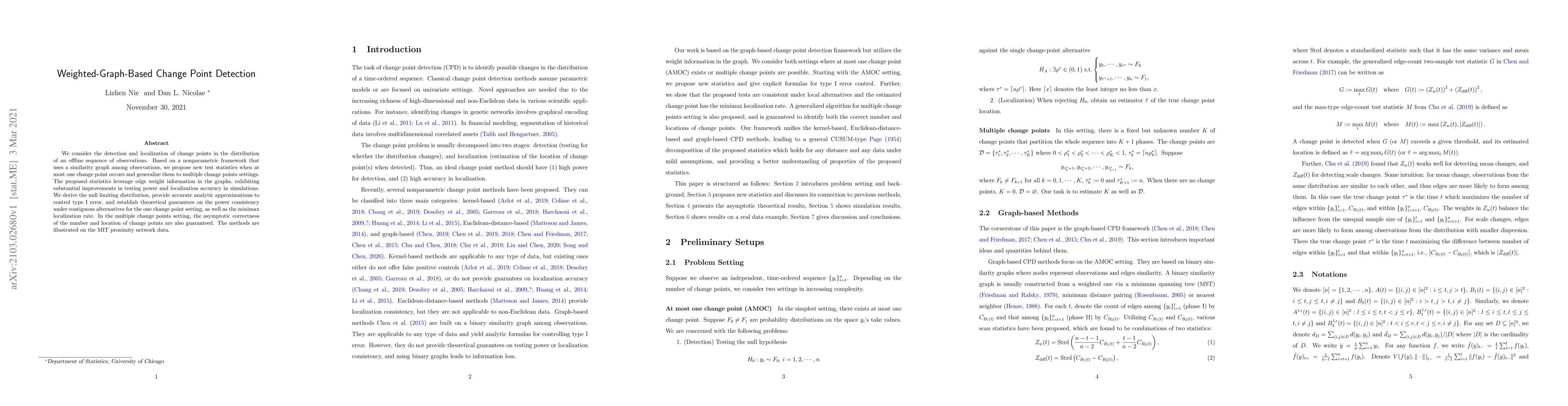 This paper proposes a weighted-graph-based framework for detecting and localizing change points in observation sequences. The method leverages graph edge weights to enhance detection accuracy, providing theoretical guarantees and demonstrating improved performance through simulations and an application to MIT proximity network data.
