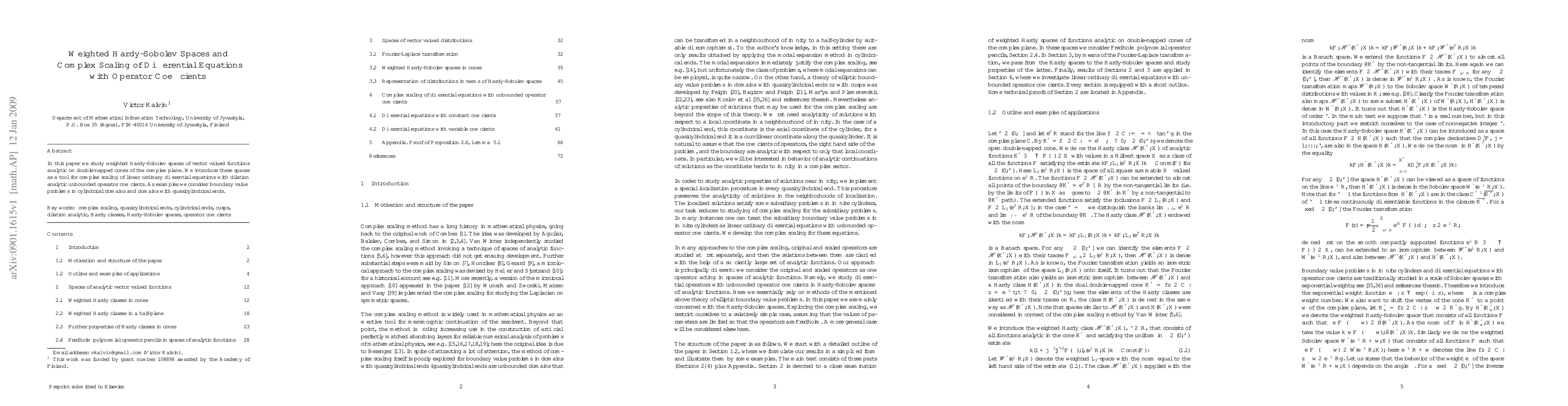 Researchers introduce weighted Hardy-Sobolev spaces to study complex scaling of linear differential equations with operator coefficients, particularly in cylindrical domains and quasicylindrical ends.