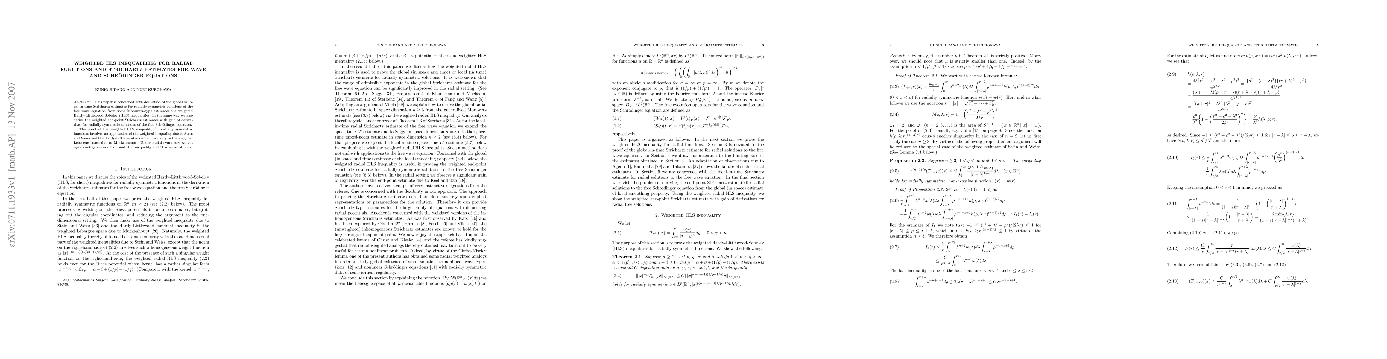 This paper derives global and local Strichartz estimates for radially symmetric solutions of the wave and Schrödinger equations using weighted Hardy-Littlewood-Sobolev inequalities, leveraging Stein-Weiss and Muckenhoupt inequalities to achieve significant improvements under radial symmetry.