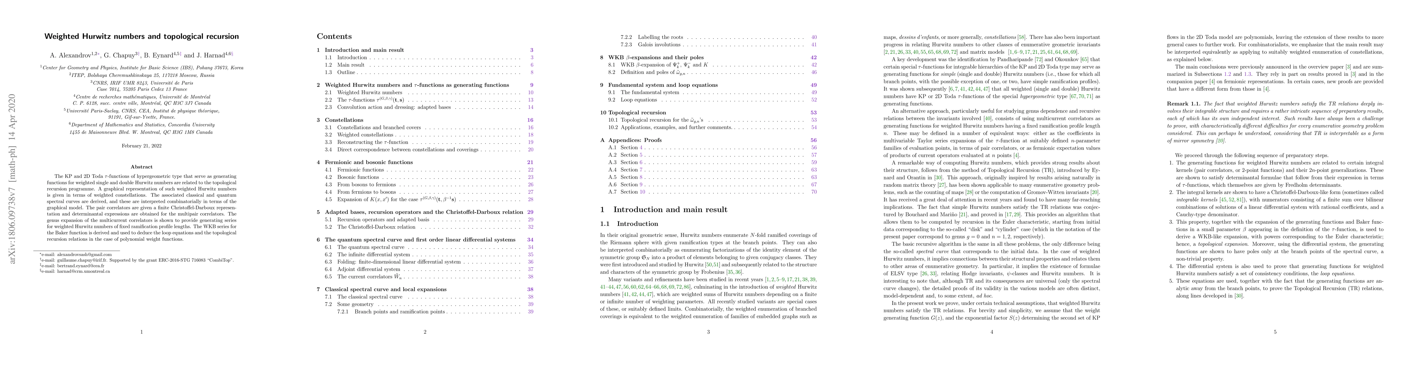 B. Eynard, J. Harnad, A. Alexandrov et al.