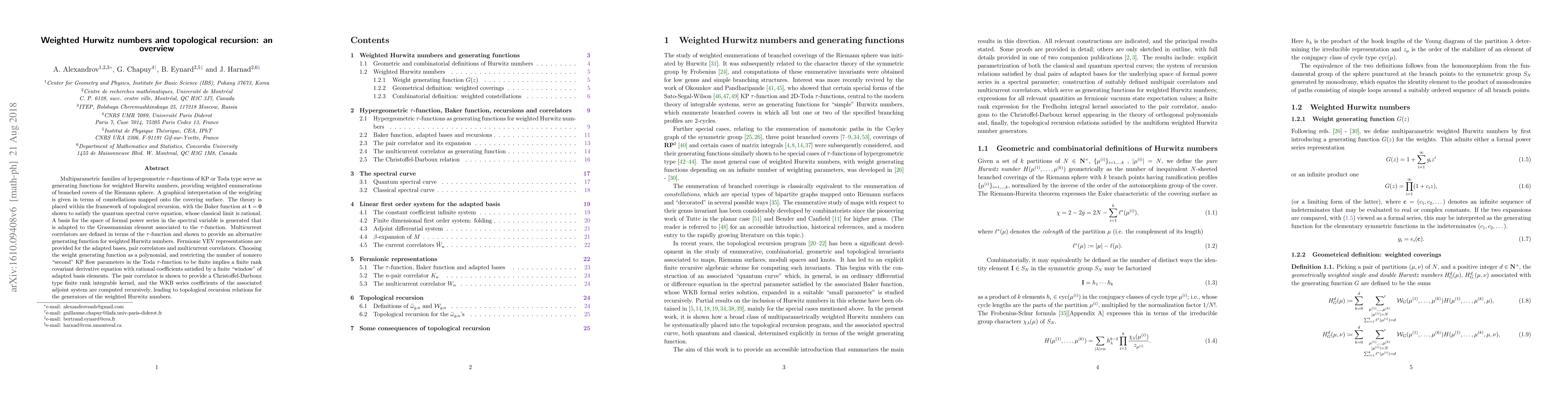 B. Eynard, J. Harnad, A. Alexandrov et al.