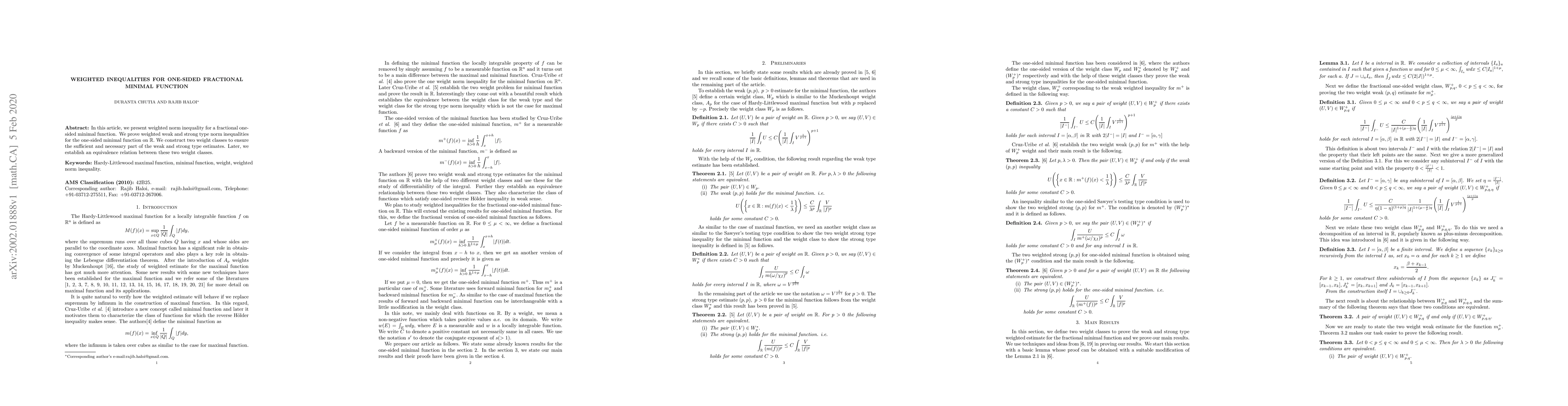 This paper establishes weighted norm inequalities for a fractional one-sided minimal function on $\mathbb{R}$, proving both weak and strong type estimates. It constructs two weight classes and demonstrates an equivalence relation between them.