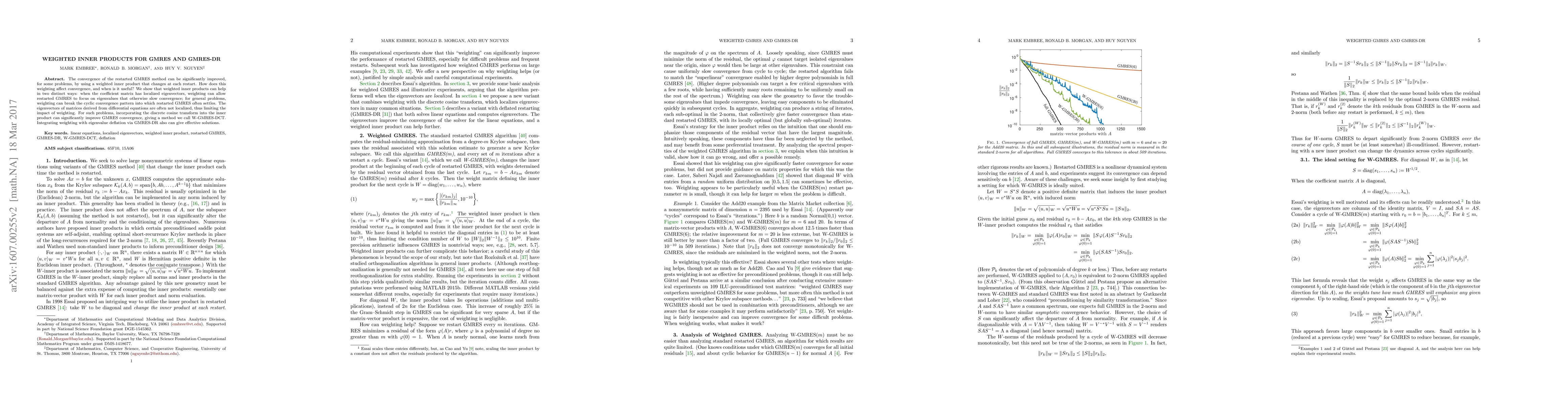 This paper explores the use of weighted inner products to enhance the convergence of the restarted GMRES method. It demonstrates that weighting can focus on relevant eigenvalues and break cyclic convergence patterns, significantly improving performance for certain problems. For non-localized eigenvectors, the paper proposes a method called W-GMRES-DCT that incorporates the discrete cosine transform to further boost convergence.