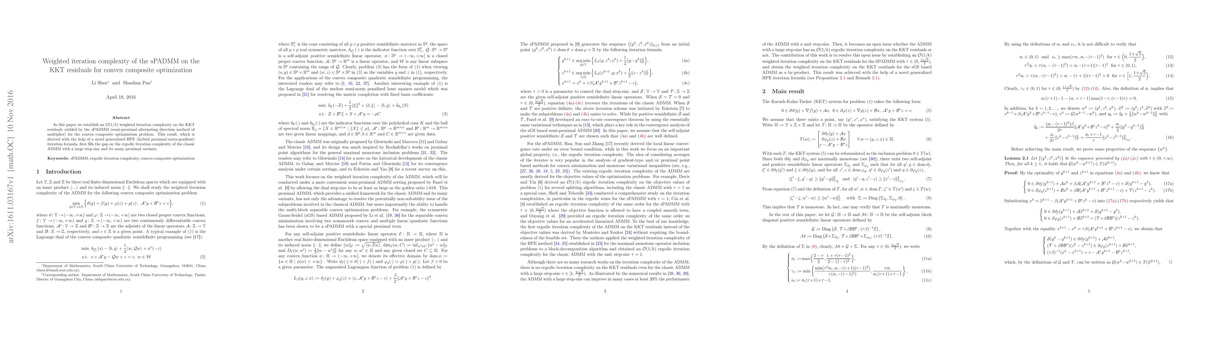 Researchers establish an O(1/k) weighted iteration complexity for the sPADMM algorithm in convex composite optimization, improving upon previous results with a large step-size and proximal variants of ADMM.