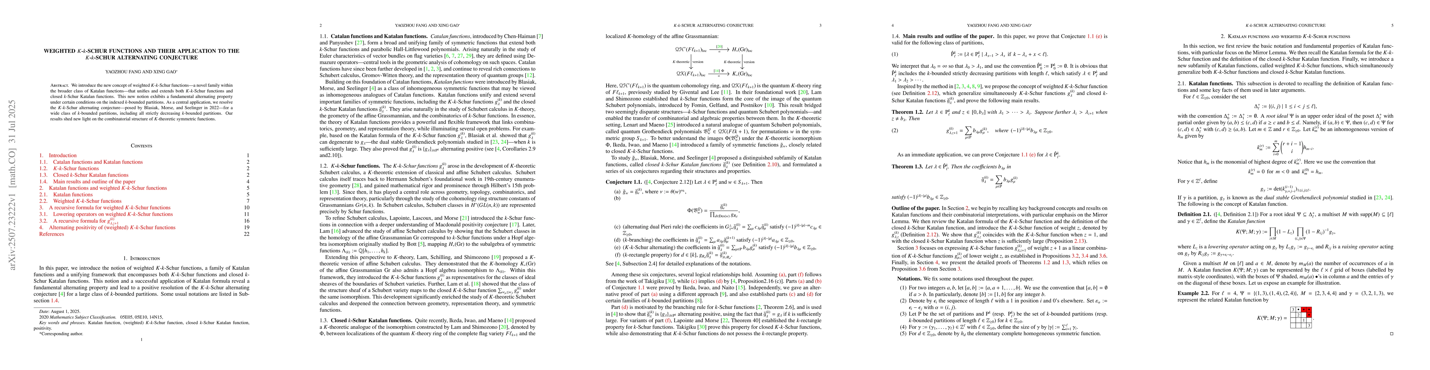 We introduce the new concept of weighted $K$-$k$-Schur functions -- a novel family within the broader class of Katalan functions -- that unifies and extends both $K$-$k$-Schur functions and closed $k$-Schur Katalan functions. This new notion exhibits a fundamental alternating property under certain conditions on the indexed $k$-bounded partitions. As a central application, we resolve the $K$-$k$-Schur alternating conjecture -- posed by Blasiak, Morse, and Seelinger in 2022 -- for a wide class of $k$-bounded partitions, including all strictly decreasing $k$-bounded partitions. Our results shed new light on the combinatorial structure of $K$-theoretic symmetric functions.