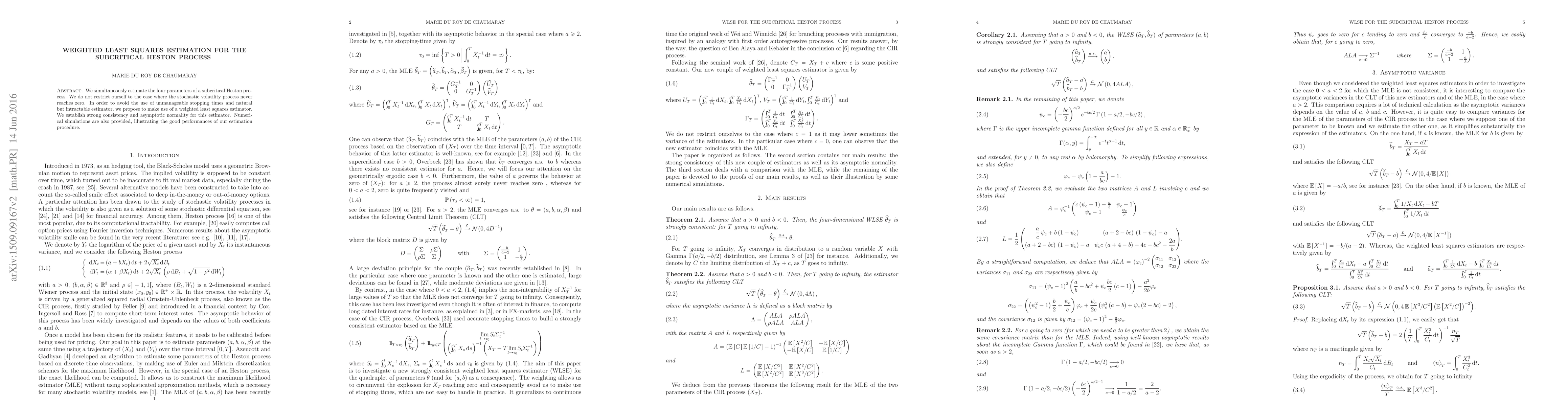 This paper proposes a weighted least squares estimator for the four parameters of a subcritical Heston process, allowing for stochastic volatility that may approach zero. It establishes strong consistency and asymptotic normality for the estimator and demonstrates its effectiveness through numerical simulations.