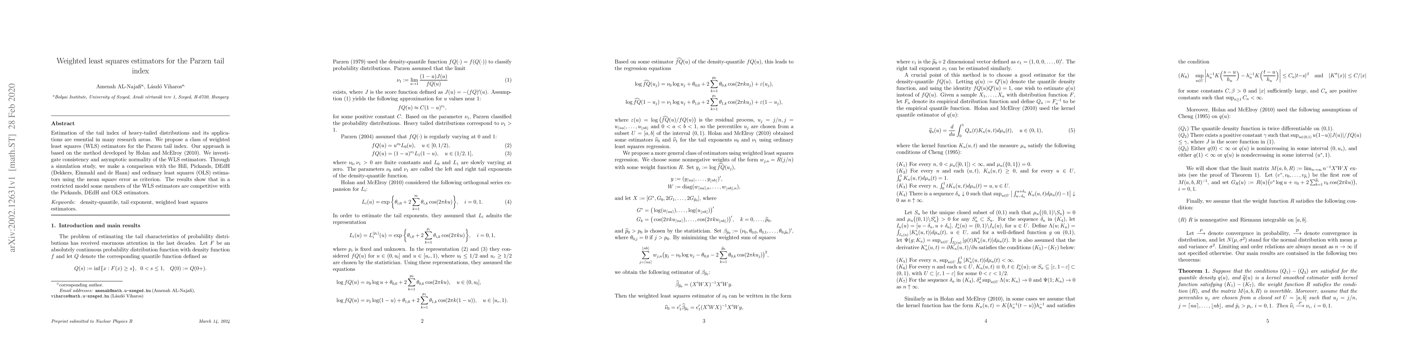 The paper introduces and analyzes weighted least squares estimators for the Parzen tail index, providing theoretical foundations for their consistency and asymptotic normality.