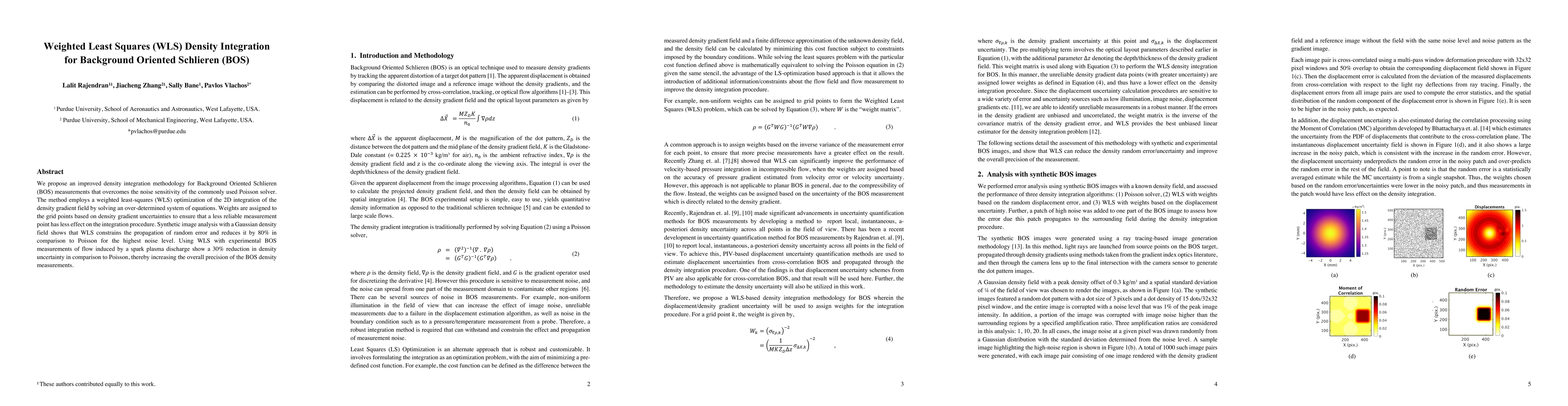 This paper proposes a weighted least squares (WLS) method for improving density integration in Background Oriented Schlieren (BOS) measurements, reducing noise sensitivity and error propagation compared to the traditional Poisson solver. The WLS method significantly decreases uncertainty and enhances precision in both synthetic and experimental BOS data.