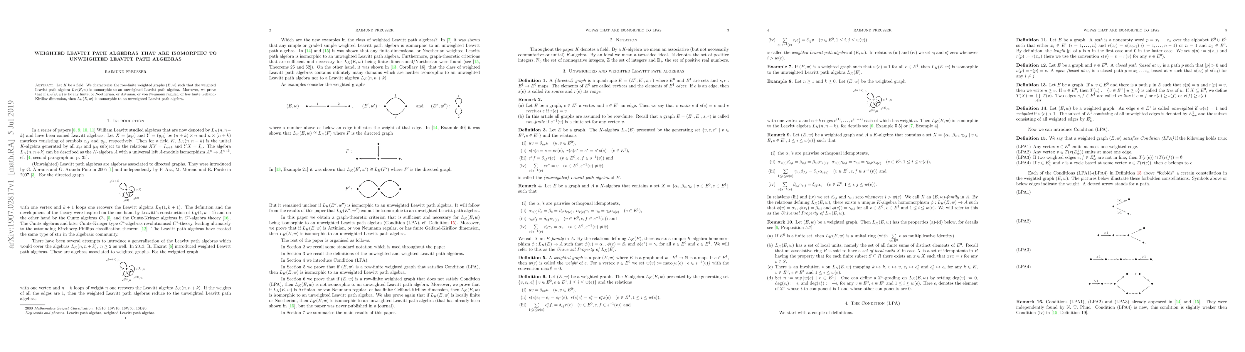This paper characterizes row-finite weighted graphs whose weighted Leavitt path algebras are isomorphic to unweighted ones. It also proves that if such a weighted algebra is locally finite, Noetherian, Artinian, von Neumann regular, or has finite Gelfand-Kirillov dimension, it remains isomorphic to an unweighted Leavitt path algebra.