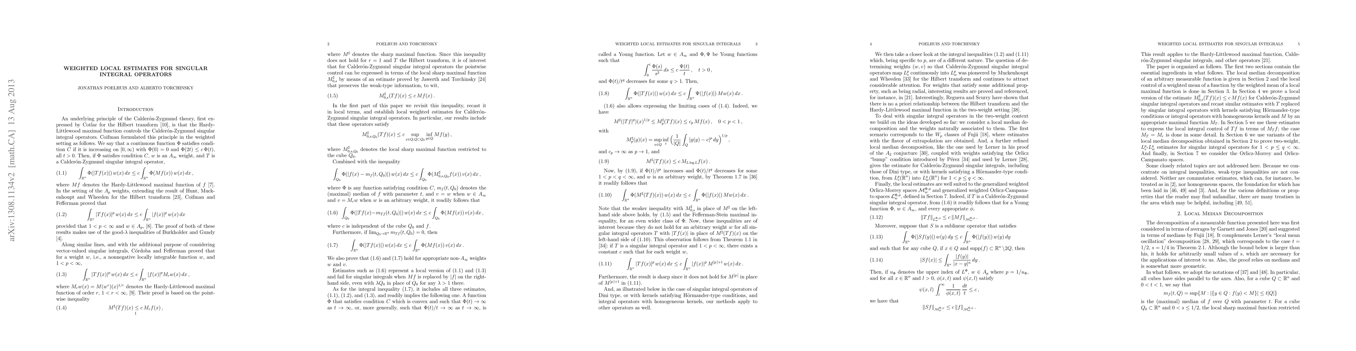 A local median decomposition is used to prove that a weighted local mean of a function is controlled by a weighted local mean of its local sharp maximal function. Together with (a local version of) the estimate $M^{\sharp}_{0,s}(Tf)(x) \le c\,Mf(x)$ for Calder\'{o}n-Zygmund singular integral operators, this allows us to express the local weighted integral control of $Tf$ by $Mf$. Similar estimates hold for $T$ replaced by singular integrals with kernels satisfying H\"{o}rmander-type conditions or integral operators with homogeneous kernels, and $M$ replaced by an appropriate maximal function $M_T$. Using sharper bounds in the local median decomposition we prove two-weight, $L^p_v$-$L^q_w$ estimates for singular integral operators for $1