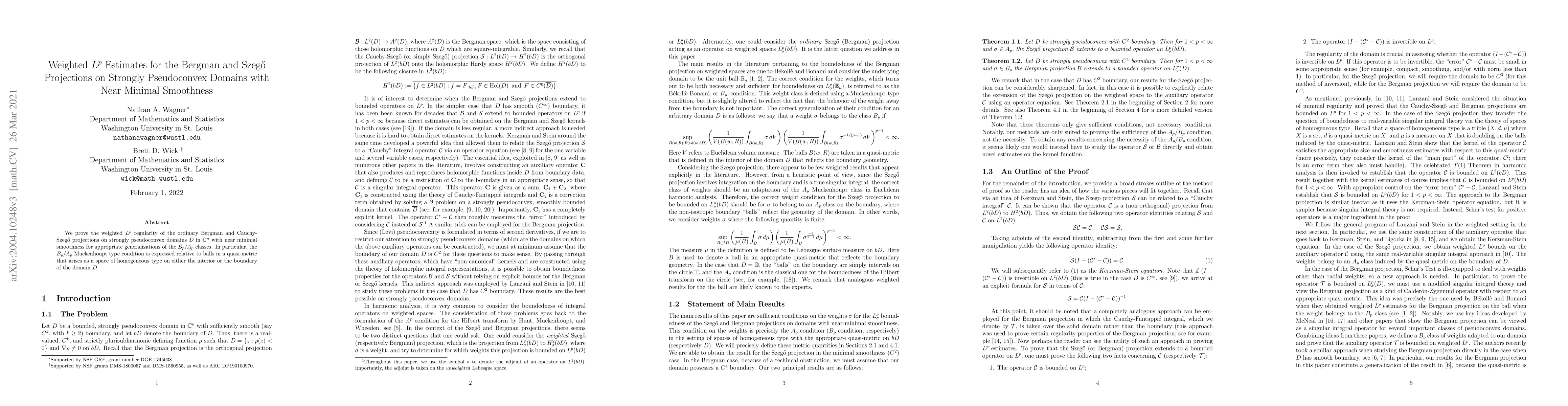 This paper proves weighted $L^p$ regularity for Bergman and Cauchy-Szegő projections on strongly pseudoconvex domains with near minimal smoothness, using a quasi-metric approach to generalize $B_p/A_p$ Muckenhoupt conditions. The results apply to domains in $\mathbb{C}^n$.