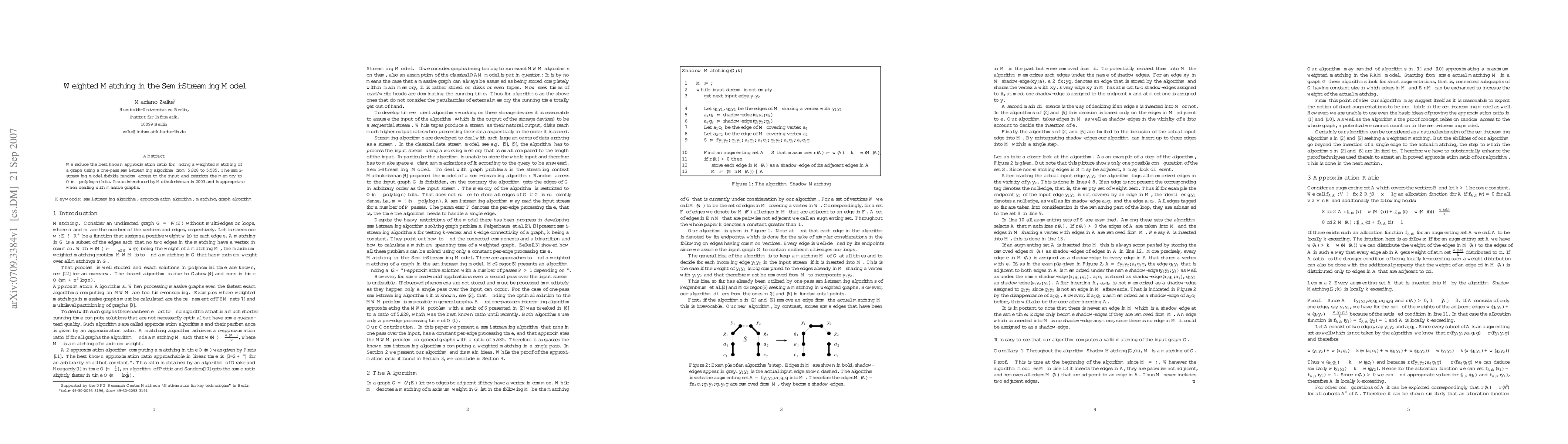 This paper improves the best known approximation ratio for weighted matching in the semi-streaming model from 5.828 to 5.585, utilizing a one-pass algorithm that operates under strict memory and input access constraints. The semi-streaming model, introduced by Muthukrishnan in 2003, is designed for processing massive graphs efficiently.