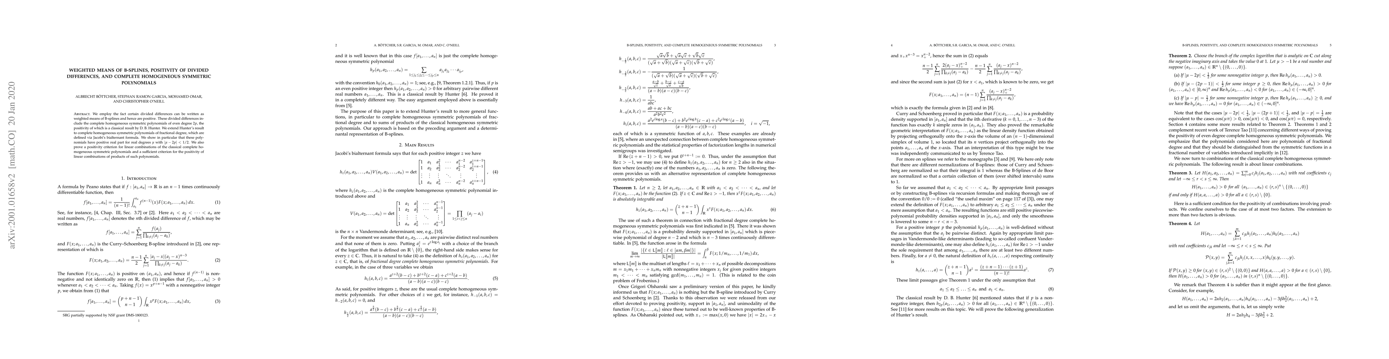 This paper demonstrates that certain divided differences, including complete homogeneous symmetric polynomials of even degree, can be expressed as weighted means of B-splines, ensuring their positivity. The authors extend Hunter's classical result to fractional degrees, proving positivity for real degrees within a specific range, and provide criteria for the positivity of linear combinations of these polynomials.