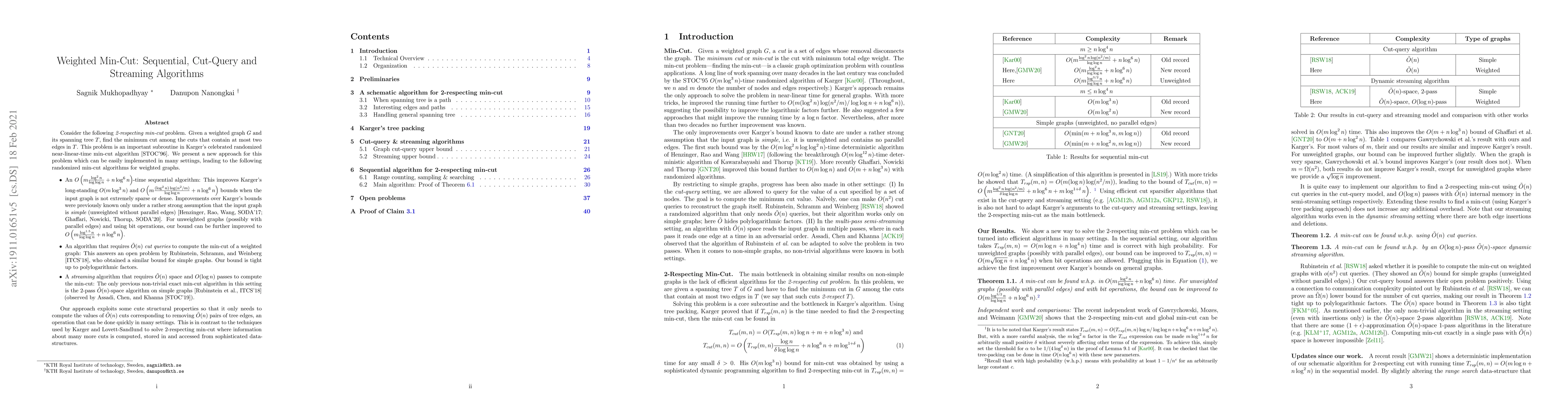 Consider the following 2-respecting min-cut problem. Given a weighted graph $G$ and its spanning tree $T$, find the minimum cut among the cuts that contain at most two edges in $T$. This problem is an important subroutine in Karger's celebrated randomized near-linear-time min-cut algorithm [STOC'96]. We present a new approach for this problem which can be easily implemented in many settings, leading to the following randomized min-cut algorithms for weighted graphs. * An $O(m\frac{\log^2 n}{\log\log n} + n\log^6 n)$-time sequential algorithm: This improves Karger's $O(m \log^3 n)$ and $O(m\frac{(\log^2 n)\log (n^2/m)}{\log\log n} + n\log^6 n)$ bounds when the input graph is not extremely sparse or dense. Improvements over Karger's bounds were previously known only under a rather strong assumption that the input graph is simple [Henzinger et al. SODA'17; Ghaffari et al. SODA'20]. For unweighted graphs with parallel edges, our bound can be improved to $O(m\frac{\log^{1.5} n}{\log\log n} + n\log^6 n)$. * An algorithm requiring $\tilde O(n)$ cut queries to compute the min-cut of a weighted graph: This answers an open problem by Rubinstein et al. ITCS'18, who obtained a similar bound for simple graphs. * A streaming algorithm that requires $\tilde O(n)$ space and $O(\log n)$ passes to compute the min-cut: The only previous non-trivial exact min-cut algorithm in this setting is the 2-pass $\tilde O(n)$-space algorithm on simple graphs [Rubinstein et al., ITCS'18] (observed by Assadi et al. STOC'19). In contrast to Karger's 2-respecting min-cut algorithm which deploys sophisticated dynamic programming techniques, our approach exploits some cute structural properties so that it only needs to compute the values of $\tilde O(n)$ cuts corresponding to removing $\tilde O(n)$ pairs of tree edges, an operation that can be done quickly in many settings.