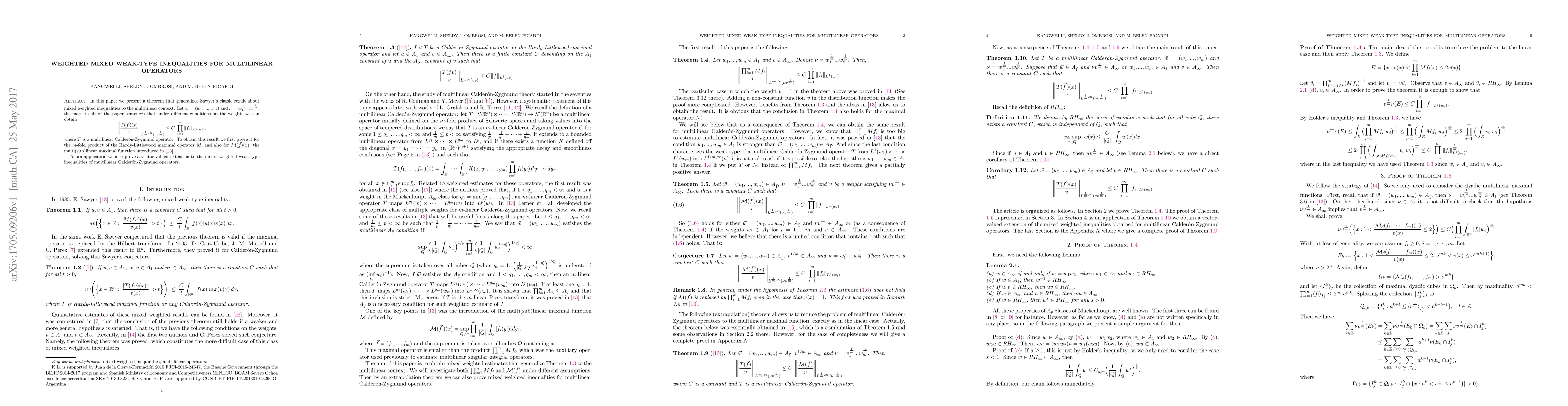 This paper generalizes Sawyer's weighted inequalities to multilinear operators, proving that under specific weight conditions, the inequality $$\Bigg\| \frac{T(\vec f\,)(x)}{v}\Bigg\|_{L^{\frac{1}{m}, \infty}(\nu v^\frac{1}{m})} \leq C \ \prod_{i=1}^m{\|f_i\|_{L^1(w_i)}}$$ holds for multilinear Calderón-Zygmund operators. An application extends these results to vector-valued multilinear maximal functions.