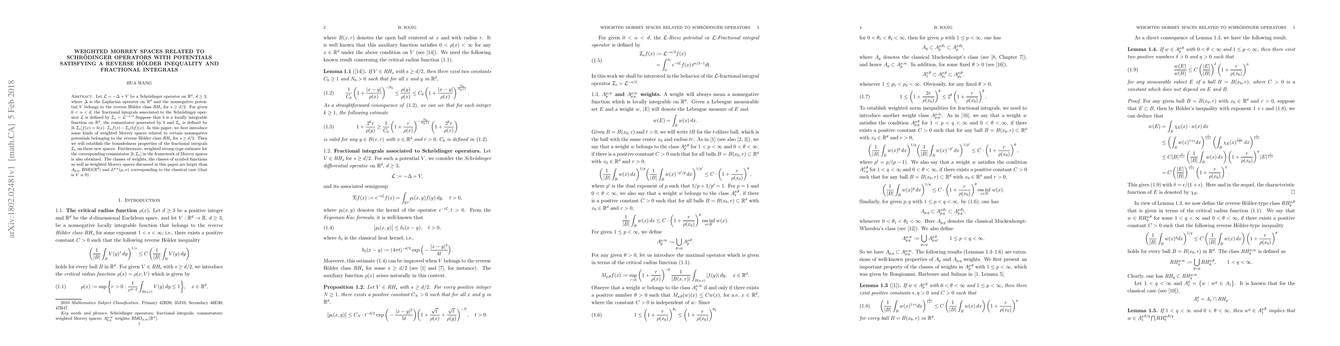 nonnegative potential $V$ belongs to the reverse H\"older class $RH_s$ for