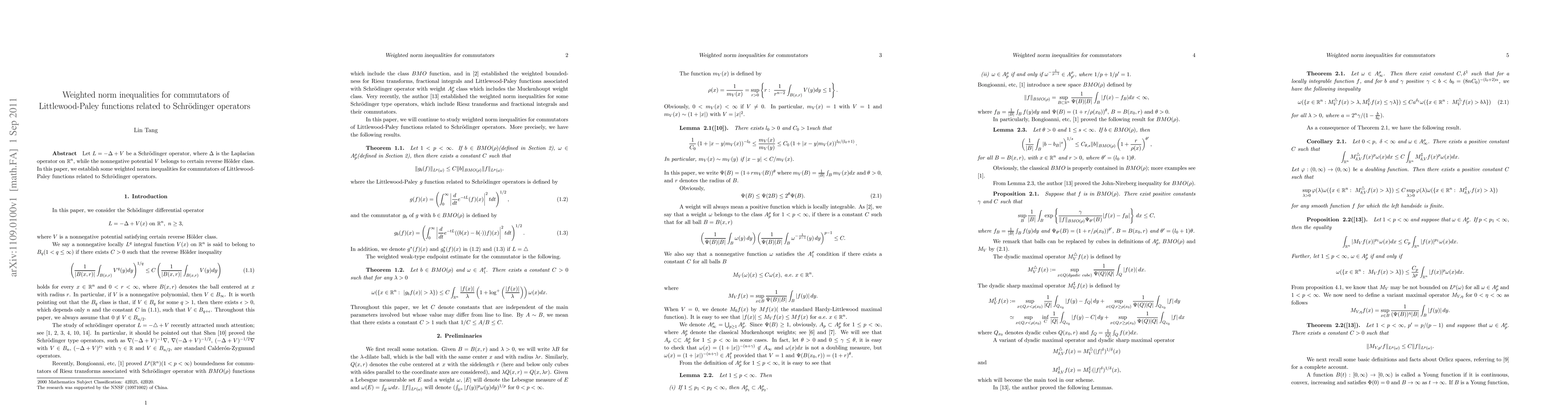 This paper establishes weighted norm inequalities for commutators of Littlewood-Paley functions connected to Schrödinger operators with potentials in a specific reverse Hölder class. These inequalities provide insights into the boundedness properties of such operators.