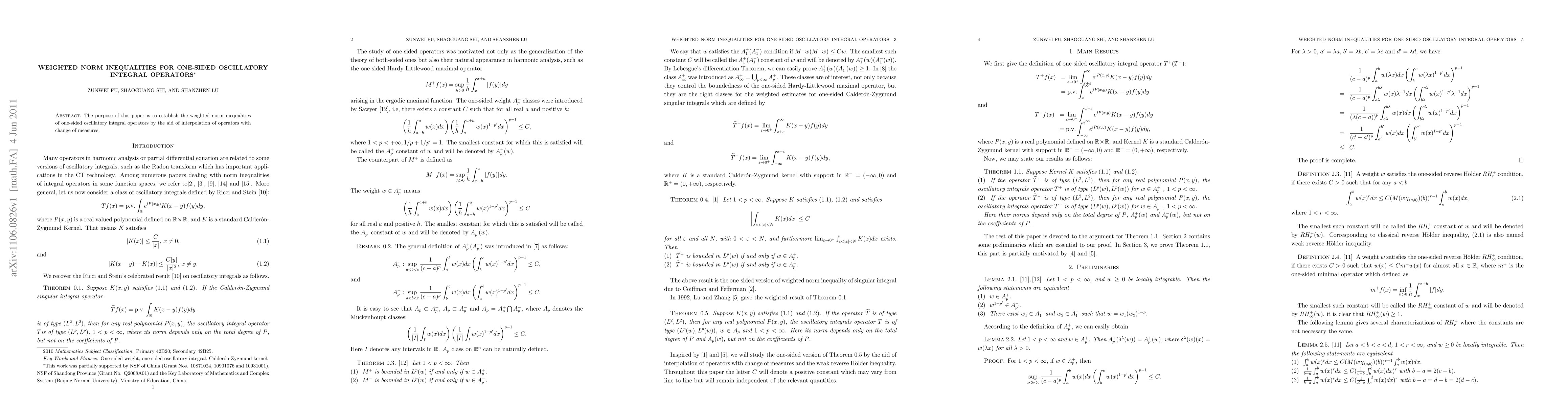 Summary: This paper establishes weighted norm inequalities for one-sided oscillatory integral operators using interpolation techniques and change of measures. The methodology provides a robust framework for analyzing these operators in various applications.