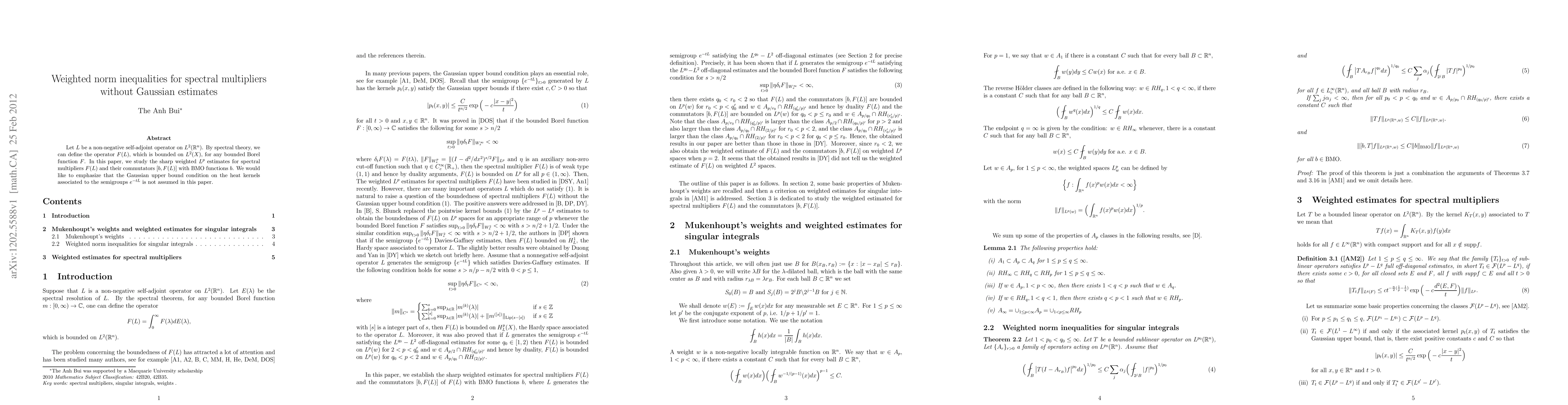 This paper investigates sharp weighted $L^p$ estimates for spectral multipliers of non-negative self-adjoint operators without relying on Gaussian upper bounds for associated heat kernels. The study focuses on the boundedness of these multipliers and their commutators with BMO functions.