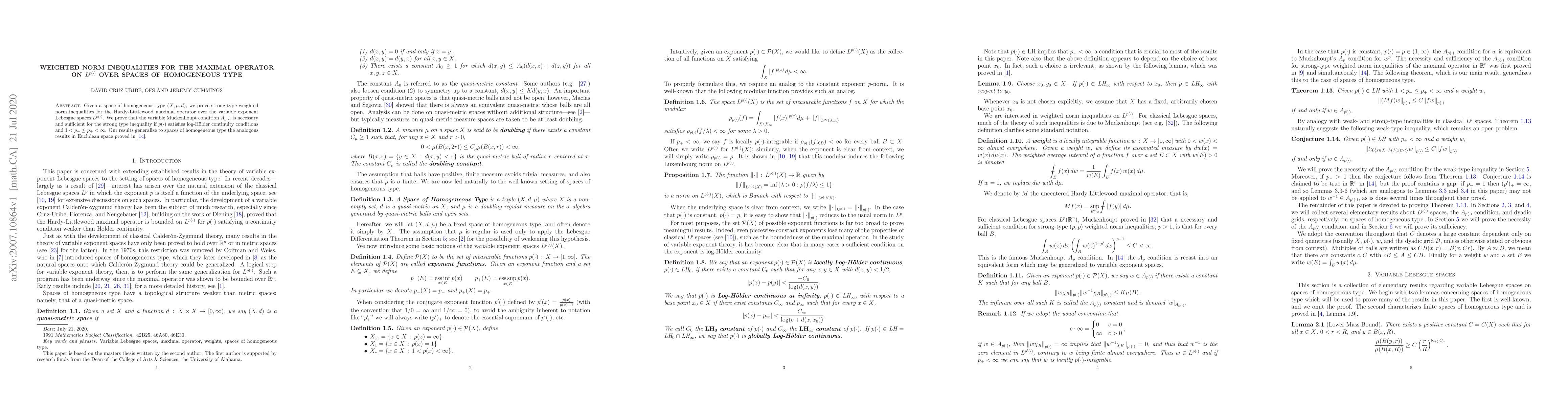 This paper proves weighted norm inequalities for the Hardy-Littlewood maximal operator on spaces of homogeneous type, requiring a variable Muckenhoupt condition for strong-type inequalities.