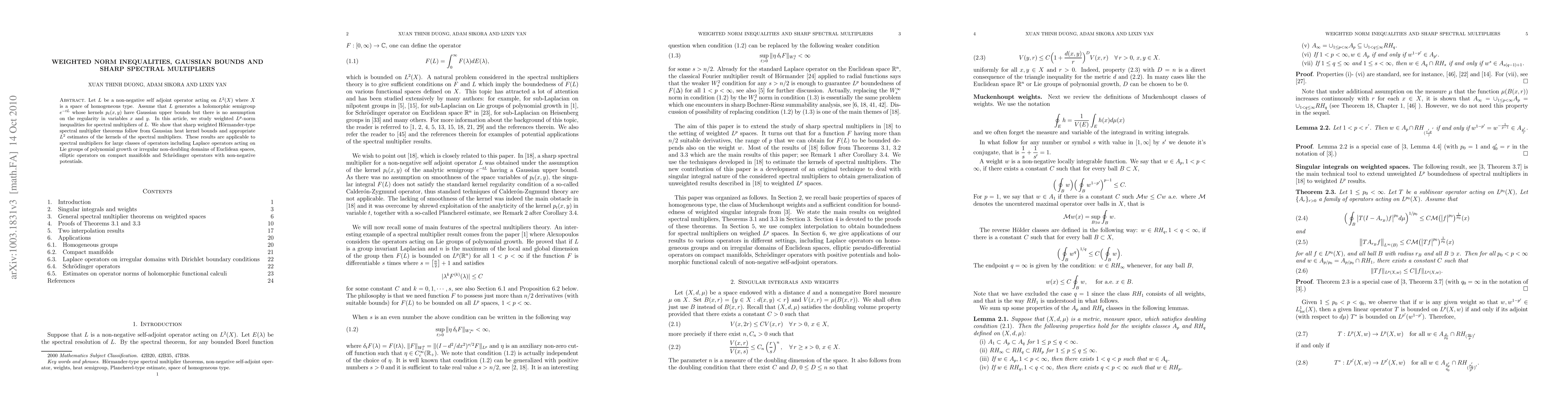 This paper explores weighted $L^p$-norm inequalities for spectral multipliers of non-negative self-adjoint operators with Gaussian heat kernel bounds. It demonstrates that these inequalities lead to sharp weighted Hörmander-type theorems, applicable to a wide range of operators including those on Lie groups, compact manifolds, and Riemannian manifolds.