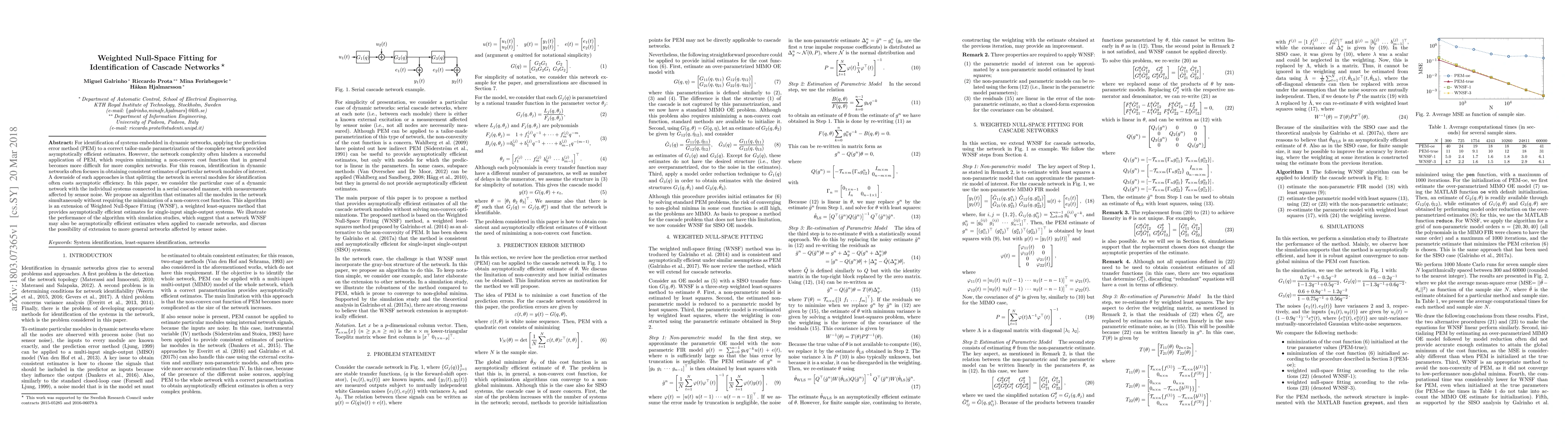 This paper proposes a Weighted Null-Space Fitting (WNSF) algorithm for identifying cascade networks, extending the method to estimate all modules simultaneously without minimizing a non-convex cost function, potentially maintaining asymptotic efficiency. Simulation results suggest the method's efficiency in estimating cascade networks with sensor noise.