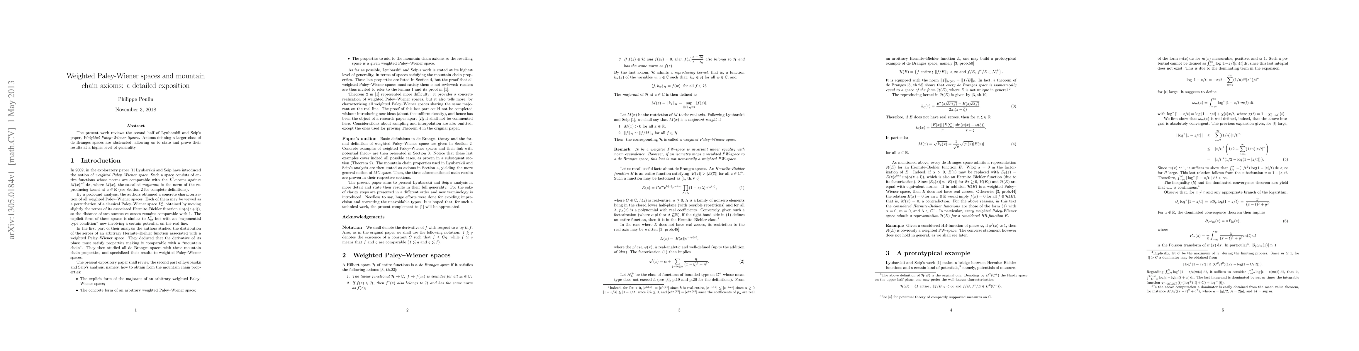 The present work reviews the second half of Lyubarskii and Seip's paper, Weighted Paley--Wiener Spaces. Axioms defining a larger class of de Branges spaces are abstracted, allowing us to state and prove their results at a higher level of generality.