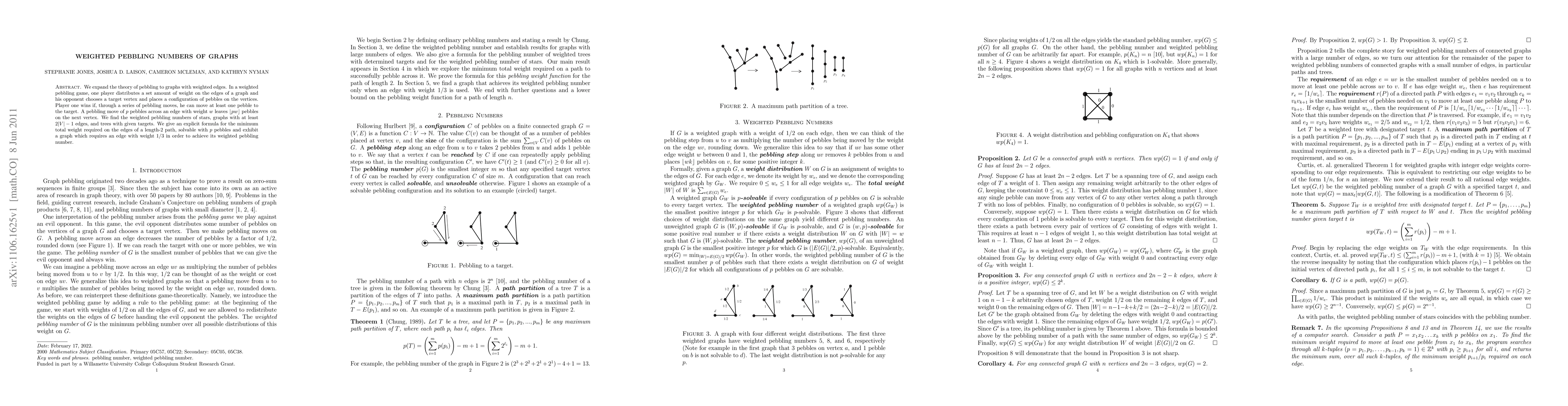 This paper explores the extension of pebbling theory to graphs with weighted edges, determining the weighted pebbling numbers for specific graph structures like stars and trees. It provides explicit formulas for the minimum total weight on edges to achieve certain pebbling configurations and identifies a graph requiring a weight of 1/3 on an edge to reach its weighted pebbling number.