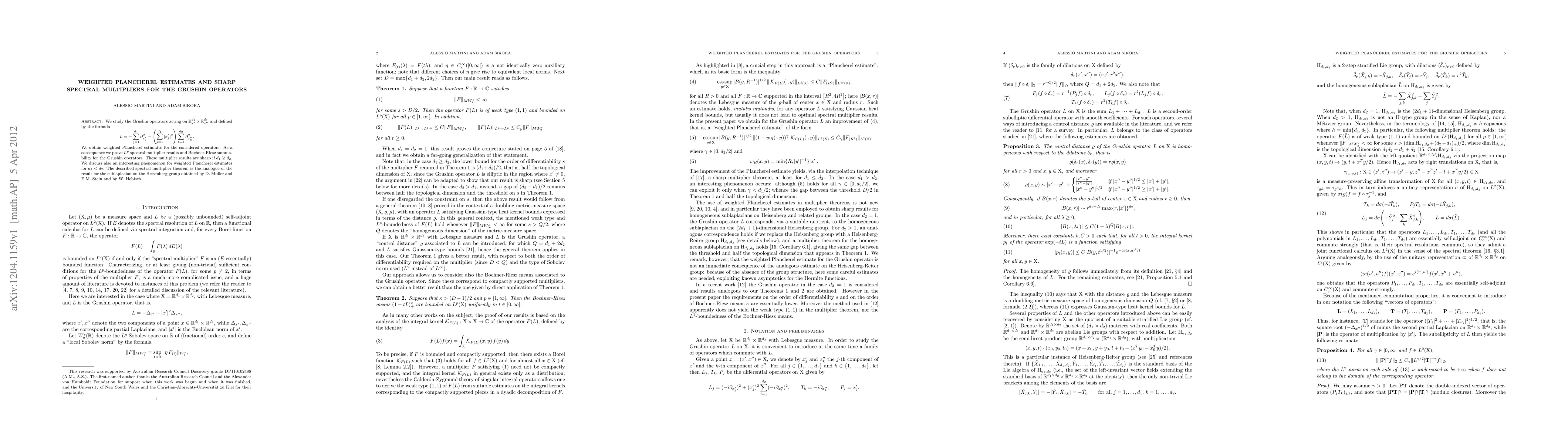 The paper presents novel weighted Plancherel estimates and sharp spectral multiplier theorems for Grushin operators, extending previous work on spectral multipliers for the sublaplacian on the Heisenberg group.