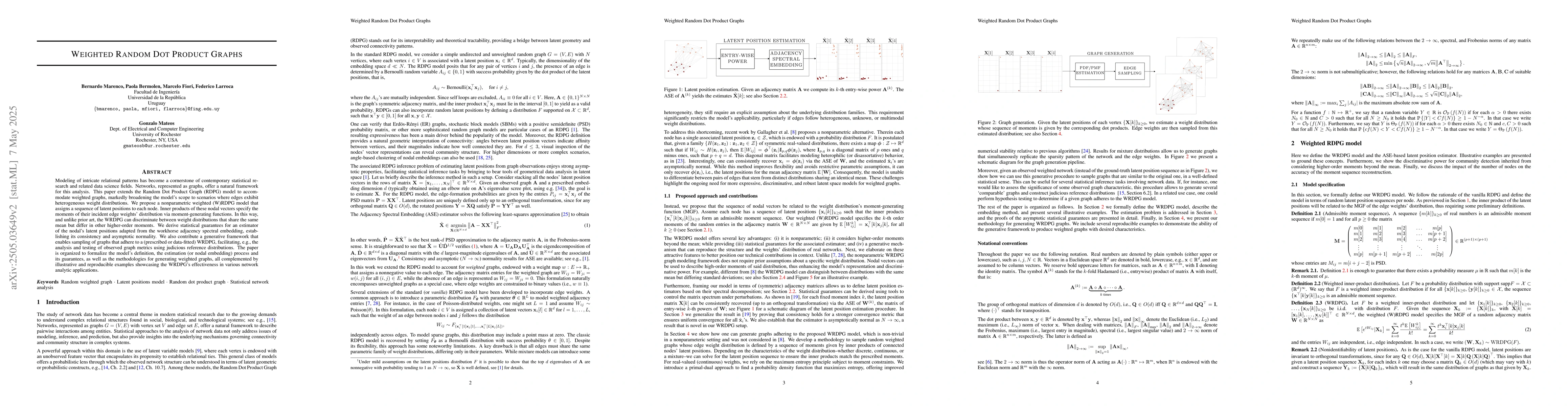 Modeling of intricate relational patterns % through the analysis structures of network data has become a cornerstone of contemporary statistical research and related data science fields. Networks, represented as graphs, offer a natural framework for this analysis. This paper extends the Random Dot Product Graph (RDPG) model to accommodate weighted graphs, markedly broadening the model's scope to scenarios where edges exhibit heterogeneous weight distributions. We propose a nonparametric weighted (W)RDPG model that assigns a sequence of latent positions to each node. Inner products of these nodal vectors specify the moments of their incident edge weights' distribution via moment-generating functions. In this way, and unlike prior art, the WRDPG can discriminate between weight distributions that share the same mean but differ in other higher-order moments. We derive statistical guarantees for an estimator of the nodal's latent positions adapted from the workhorse adjacency spectral embedding, establishing its consistency and asymptotic normality. We also contribute a generative framework that enables sampling of graphs that adhere to a (prescribed or data-fitted) WRDPG, facilitating, e.g., the analysis and testing of observed graph metrics using judicious reference distributions. The paper is organized to formalize the model's definition, the estimation (or nodal embedding) process and its guarantees, as well as the methodologies for generating weighted graphs, all complemented by illustrative and reproducible examples showcasing the WRDPG's effectiveness in various network analytic applications.