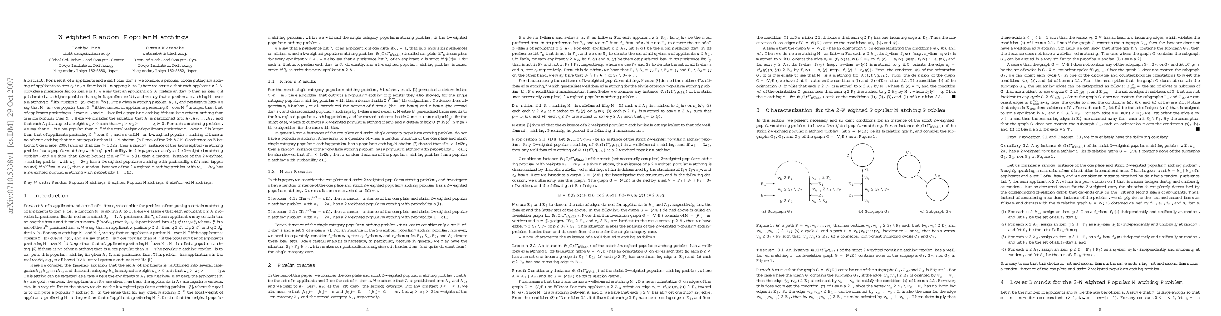 For a set A of n applicants and a set I of m items, we consider a problem of computing a matching of applicants to items, i.e., a function M mapping A to I; here we assume that each applicant $x \in A$ provides a preference list on items in I. We say that an applicant $x \in A$ prefers an item p than an item q if p is located at a higher position than q in its preference list, and we say that x prefers a matching M over a matching M' if x prefers M(x) over M'(x). For a given matching problem A, I, and preference lists, we say that M is more popular than M' if the number of applicants preferring M over M' is larger than that of applicants preferring M' over M, and M is called a popular matching if there is no other matching that is more popular than M. Here we consider the situation that A is partitioned into $A_{1},A_{2},...,A_{k}$, and that each $A_{i}$ is assigned a weight $w_{i}>0$ such that w_{1}>w_{2}>...>w_{k}>0$. For such a matching problem, we say that M is more popular than M' if the total weight of applicants preferring M over M' is larger than that of applicants preferring M' over M, and we call M an k-weighted popular matching if there is no other matching that is more popular than M. In this paper, we analyze the 2-weighted matching problem, and we show that (lower bound) if $m/n^{4/3}=o(1)$, then a random instance of the 2-weighted matching problem with $w_{1} \geq 2w_{2}$ has a 2-weighted popular matching with probability o(1); and (upper bound) if $n^{4/3}/m = o(1)$, then a random instance of the 2-weighted matching problem with $w_{1} \geq 2w_{2}$ has a 2-weighted popular matching with probability 1-o(1).
