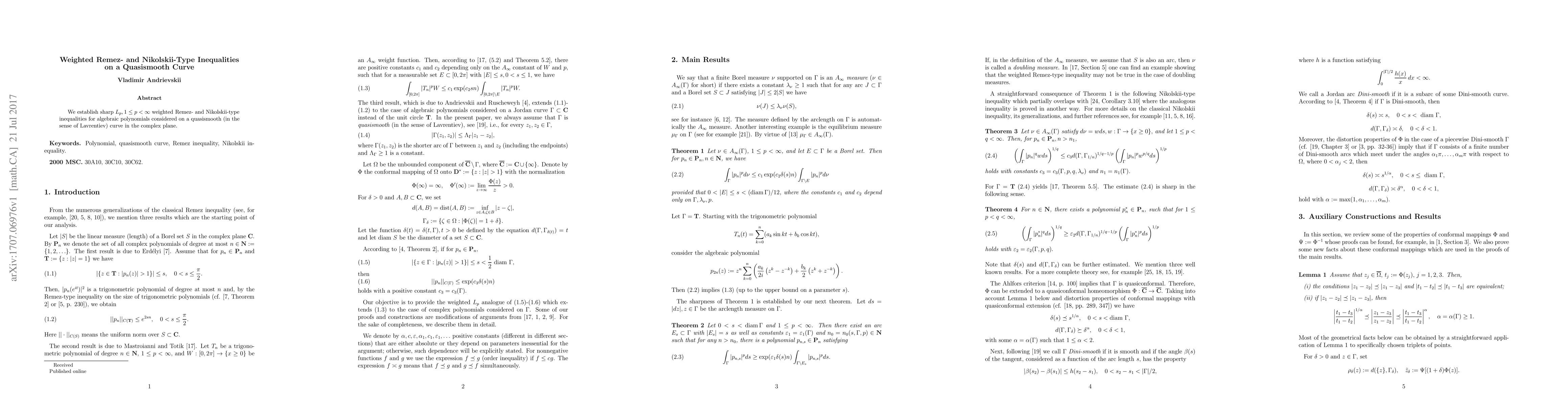 We establish sharp $L_p,1\le p<\infty$ weighted Remez- and Nikolskii-type inequalities for algebraic polynomials considered on a quasismooth (in the sense of Lavrentiev) curve in the complex plane.