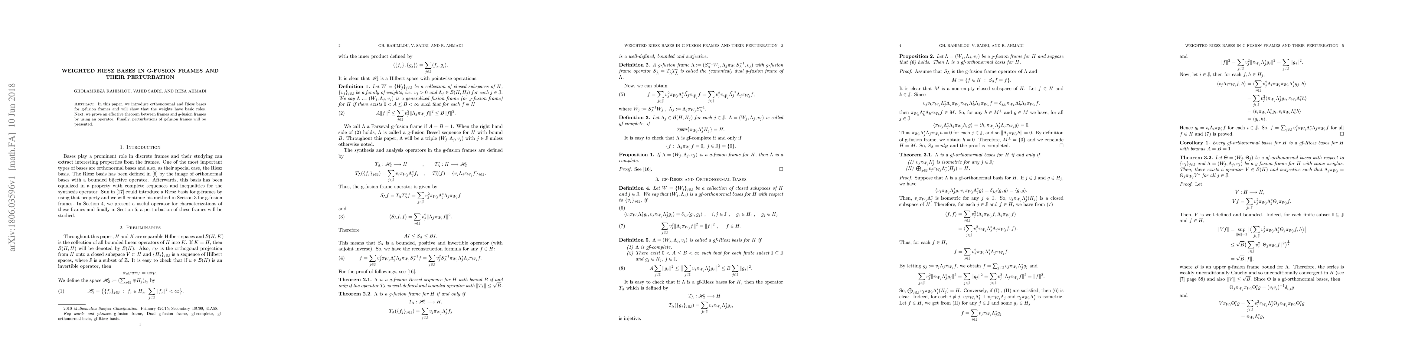 This paper introduces orthonormal and Riesz bases for g-fusion frames, emphasizing the fundamental role of weights. It also establishes a connection between frames and g-fusion frames via an operator, and explores the perturbations of g-fusion frames.