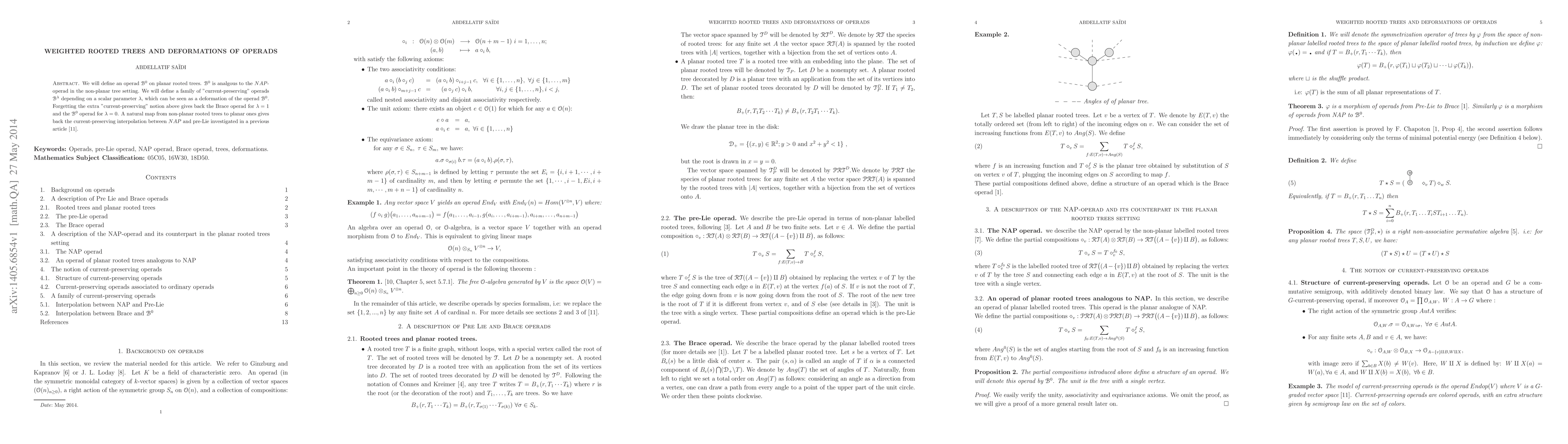 This paper introduces an operad $\mathcal{B}^0$ on planar rooted trees analogous to the $NAP$-operad for non-planar trees, and defines a family of "current-preserving" operads $\mathcal{B}^\lambda$ that deform $\mathcal{B}^0$ with a scalar parameter $\lambda$, recovering the Brace operad for $\lambda=1$ and $\mathcal{B}^0$ for $\lambda=0.