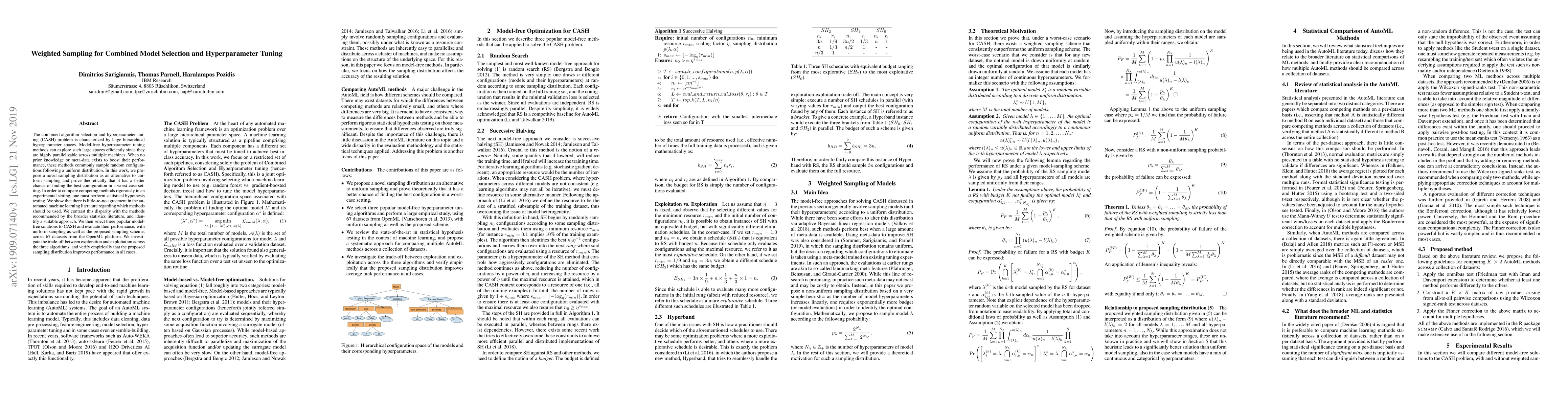 The combined algorithm selection and hyperparameter tuning (CASH) problem is characterized by large hierarchical hyperparameter spaces. Model-free hyperparameter tuning methods can explore such large spaces efficiently since they are highly parallelizable across multiple machines. When no prior knowledge or meta-data exists to boost their performance, these methods commonly sample random configurations following a uniform distribution. In this work, we propose a novel sampling distribution as an alternative to uniform sampling and prove theoretically that it has a better chance of finding the best configuration in a worst-case setting. In order to compare competing methods rigorously in an experimental setting, one must perform statistical hypothesis testing. We show that there is little-to-no agreement in the automated machine learning literature regarding which methods should be used. We contrast this disparity with the methods recommended by the broader statistics literature, and identify a suitable approach. We then select three popular model-free solutions to CASH and evaluate their performance, with uniform sampling as well as the proposed sampling scheme, across 67 datasets from the OpenML platform. We investigate the trade-off between exploration and exploitation across the three algorithms, and verify empirically that the proposed sampling distribution improves performance in all cases.