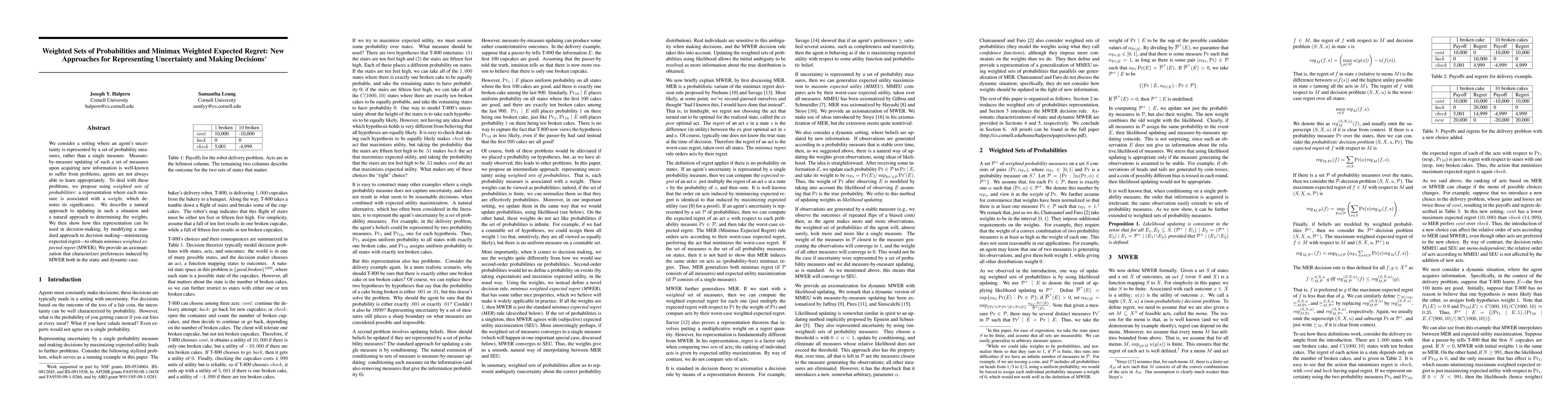 This paper proposes a new approach to representing uncertainty using weighted sets of probabilities, enabling agents to make decisions with minimax expected regret. It provides an axiomatization that characterizes preferences induced by this method in both static and dynamic scenarios.