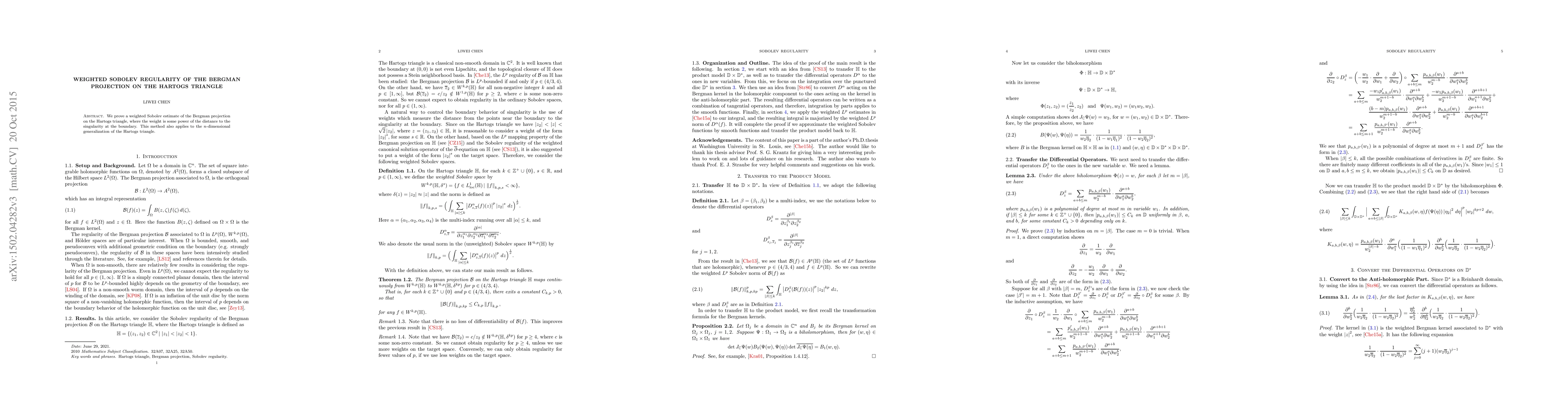 This research establishes a weighted Sobolev regularity estimate for the Bergman projection on the Hartogs triangle, utilizing a weight based on the distance to the boundary singularity. The approach is extendable to higher-dimensional analogs of the Hartogs triangle.