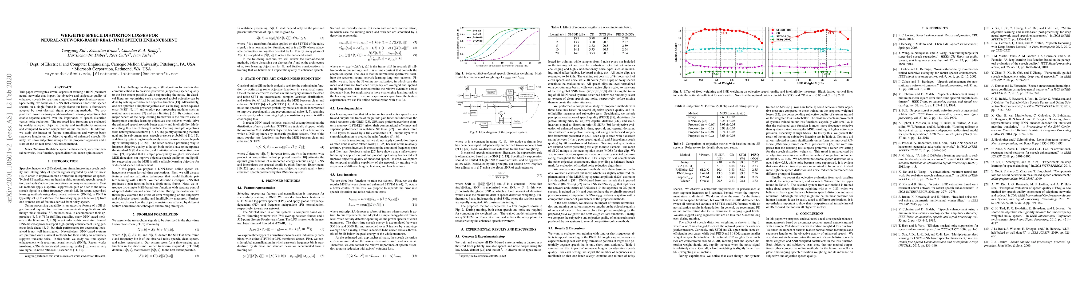 This paper proposes two novel weighted mean-squared-error losses for training a RNN to enhance real-time single-channel speech, allowing control over speech distortion and noise reduction. The effectiveness of these losses is evaluated against other methods using objective and subjective measures.