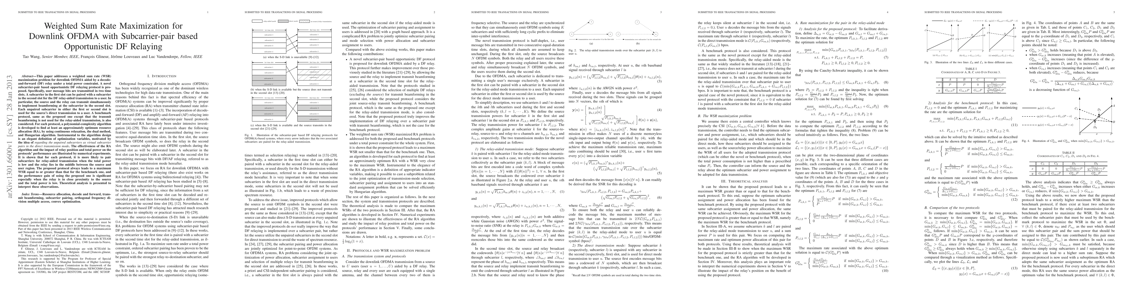 This paper proposes a weighted sum rate maximization protocol for downlink OFDMA with subcarrier-pair based opportunistic DF relaying, achieving significant performance gains over a benchmark protocol. The developed algorithm leverages simultaneous transmission and beamforming to optimize resource allocation.