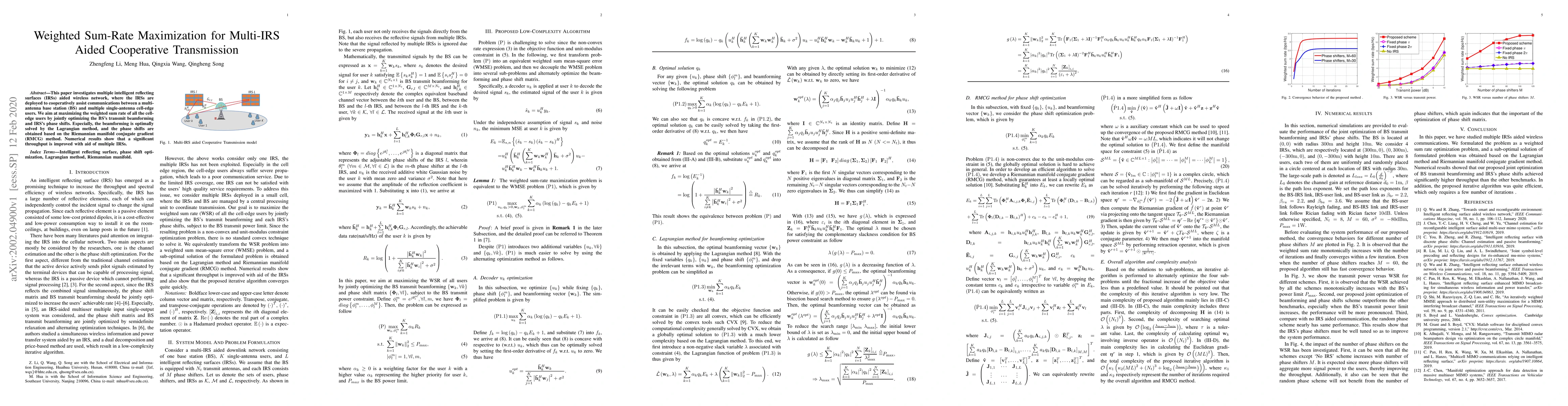 This paper investigates multiple intelligent reflecting surfaces (IRSs) aided wireless network, where the IRSs are deployed to cooperatively assist communications between a multi-antenna base station (BS) and multiple single-antenna cell-edge users. We aim at maximizing the weighted sum rate of all the cell-edge users by jointly optimizing the BS's transmit beamforming and IRS's phase shifts. Especially, the beamforming is optimally solved by the Lagrangian method, and the phase shifts are obtained based on the Riemannian manifold conjugate gradient (RMCG) method. Numerical results show that a significant throughput is improved with aid of multiple IRSs.
