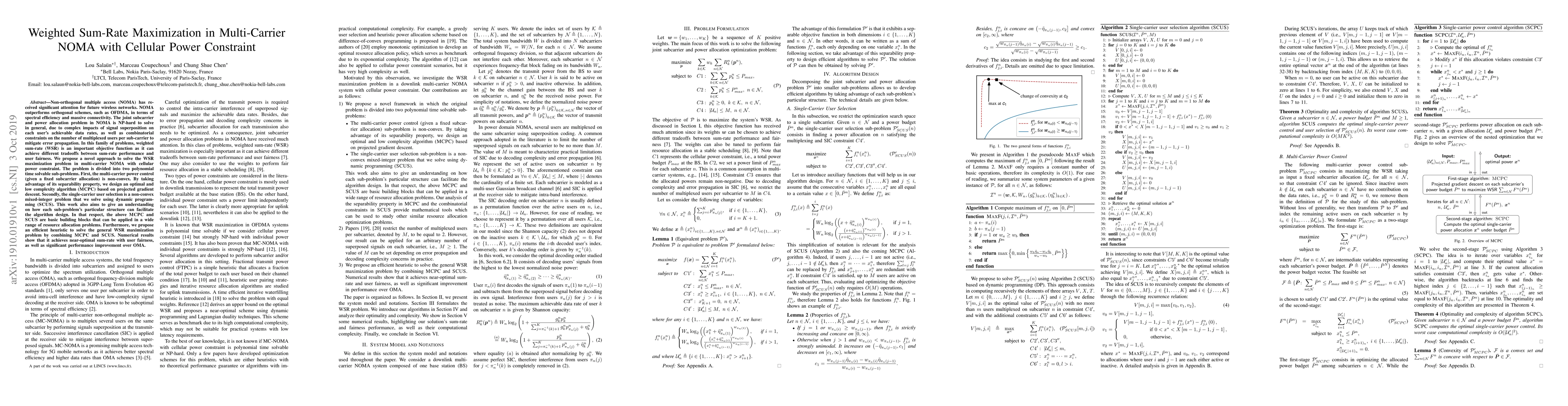 This paper proposes a novel approach to maximize weighted sum-rate in multi-carrier NOMA under cellular power constraints by dividing the problem into two polynomial time solvable sub-problems: multi-carrier power control and single-carrier user selection. The algorithm achieves near-optimal sum-rate and user fairness, outperforming orthogonal multiple access schemes.