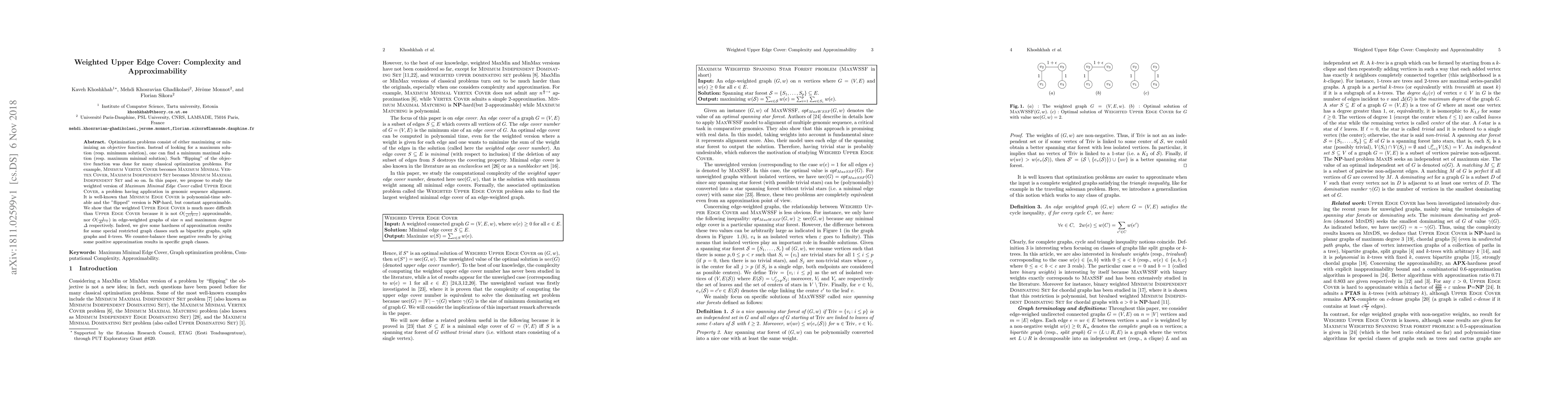 Optimization problems consist of either maximizing or minimizing an objective function. Instead of looking for a maximum solution (resp. minimum solution), one can find a minimum maximal solution (resp. maximum minimal solution). Such "flipping" of the objective function was done for many classical optimization problems. For example, Minimum Vertex Cover becomes Maximum Minimal Vertex Cover, Maximum Independent Set becomes Minimum Maximal Independent Set and so on. In this paper, we propose to study the weighted version of Maximum Minimal Edge Cover called Upper Edge Cover, a problem having application in the genomic sequence alignment. It is well-known that Minimum Edge Cover is polynomial-time solvable and the "flipped" version is NP-hard, but constant approximable. We show that the weighted Upper Edge Cover is much more difficult than Upper Edge Cover because it is not $O(\frac{1}{n^{1/2-\varepsilon}})$ approximable, nor $O(\frac{1}{\Delta^{1-\varepsilon}})$ in edge-weighted graphs of size $n$ and maximum degree $\Delta$ respectively. Indeed, we give some hardness of approximation results for some special restricted graph classes such as bipartite graphs, split graphs and $k$-trees. We counter-balance these negative results by giving some positive approximation results in specific graph classes.