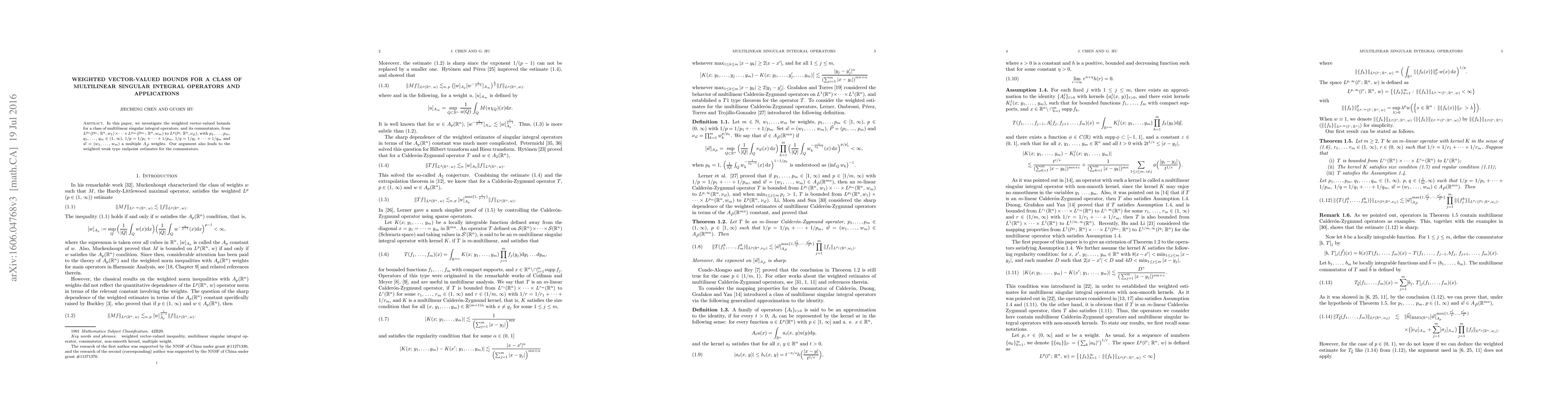 In this paper, we investigate the weighted vector-valued bounds for a class of multilinear singular integral operators, and its commutators, from $L^{p_1}(l^{q_1};\,\mathbb{R}^n,w_1)\times\dots\times L^{p_m}(l^{q_m};\,\mathbb{R}^n,w_m)$ to $L^{p}(l^q;\,\mathbb{R}^n,\nu_{\vec{w}})$, with $p_1,\dots,p_m\in (1,\,\infty)$ and $1/p=1/p_1+\dots+1/p_m$ and $\vec{w}$ is a multiple $A_{\vec{P}}$ weights. Our argument also leads to the weighted weak type endpoint estimates for the commutators.