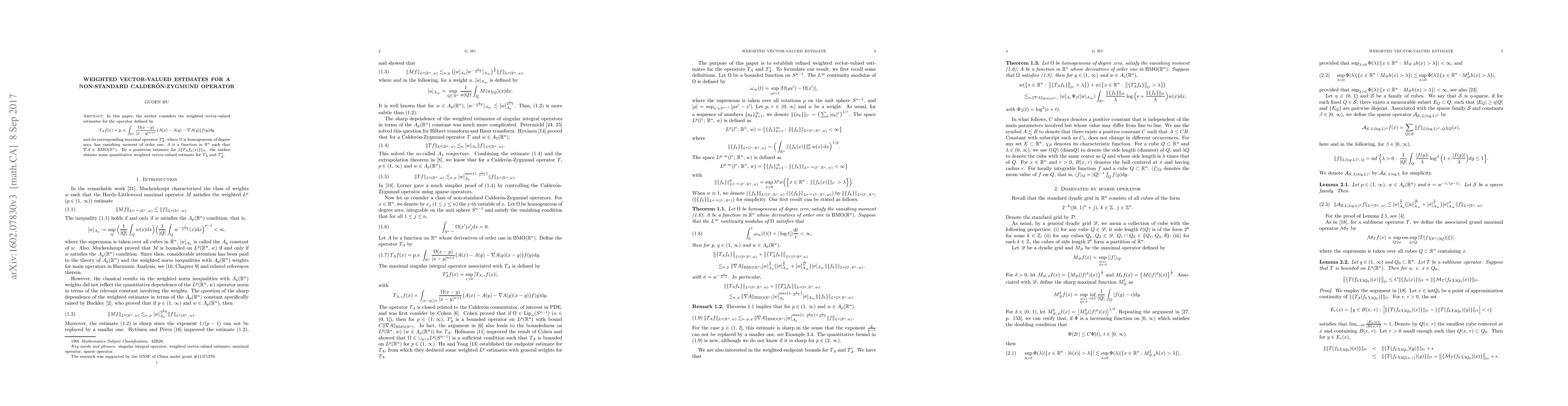 This paper establishes weighted vector-valued estimates for a non-standard Calderon-Zygmund operator and its maximal operator, focusing on pointwise and weighted Lp estimates with specific conditions on the function A.