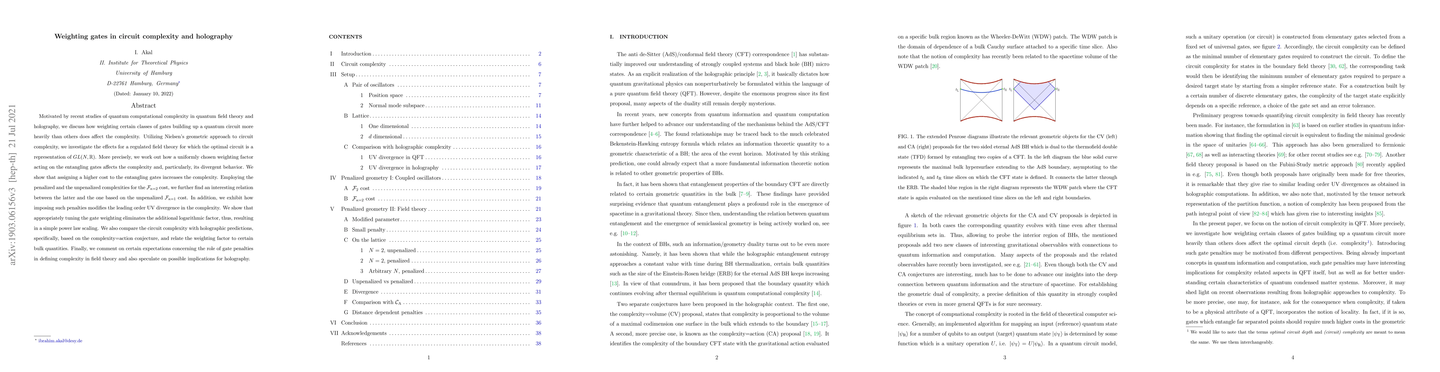This paper explores how weighting certain gates in quantum circuits affects complexity, using Nielsen's geometric approach. It finds that higher costs for entangling gates increase complexity and modifies the UV divergence, leading to a simpler power law scaling. The study also correlates circuit complexity with holographic predictions based on the complexity=action conjecture.