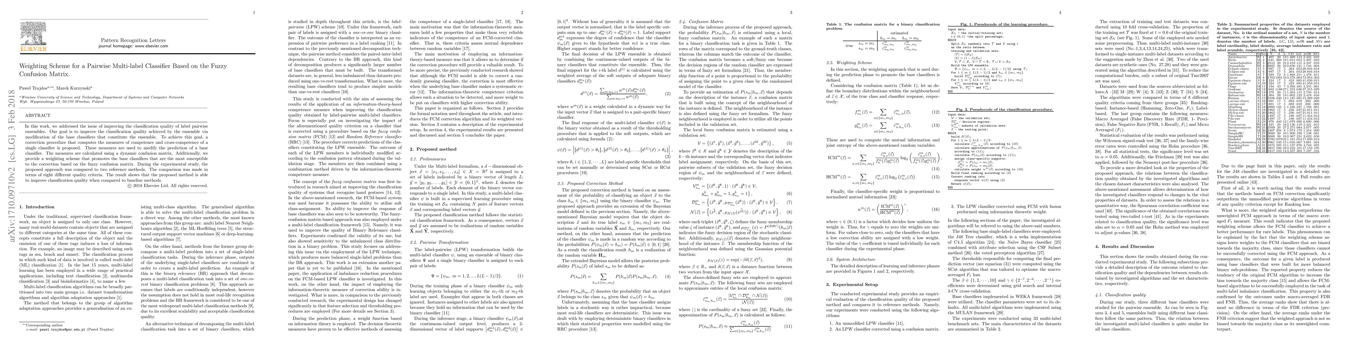 This paper proposes a novel weighting scheme for a pairwise multi-label classifier using a fuzzy confusion matrix to correct label ensembles. The method employs classifier-specific competence measures and two weighting approaches based on information theory, achieving better classification quality and reducing the impact of dataset fluctuations.